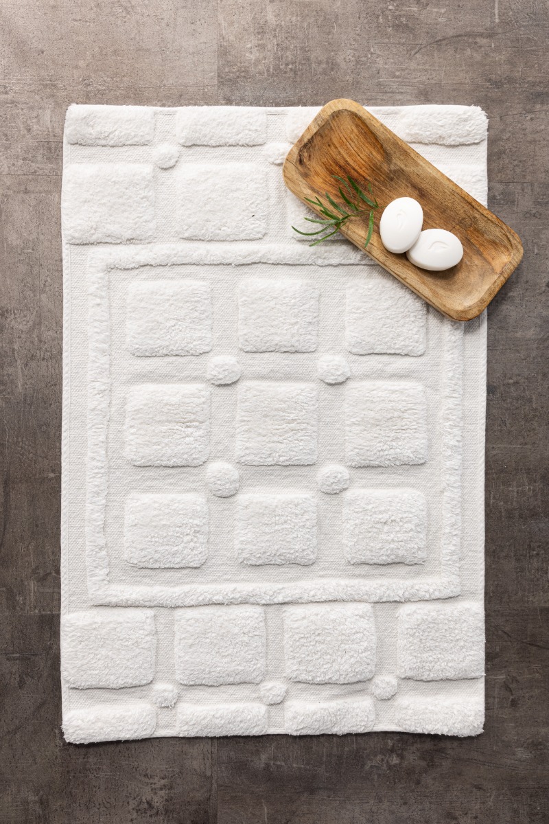 Mjukt och absorberande badrumsmatta i 100% bomull med extra tjocklek för bästa komfort och säkerhet. Stilren vit design som fräschar upp ditt badrum.