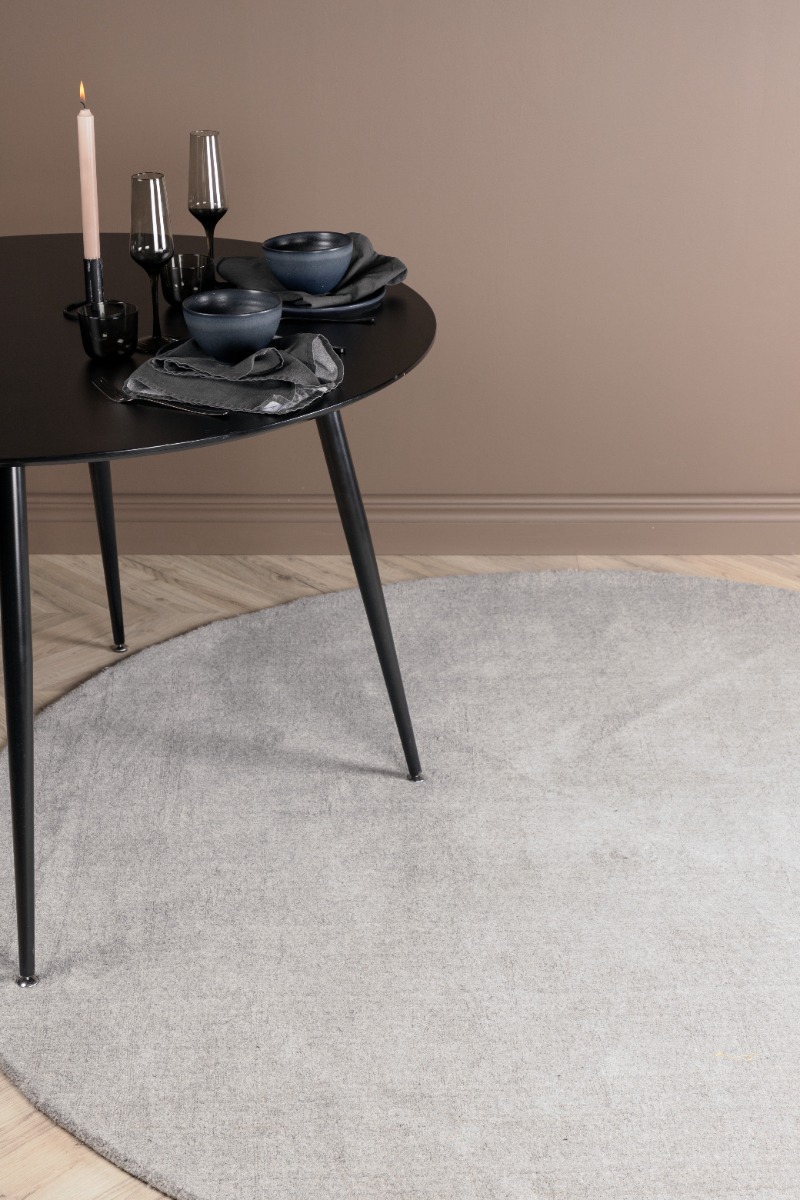 Mjukt rund ullmatta i ljusgrått. Elegant och slitstarkt material med mjuk polyesterkombination, perfekt för alla rum i hemmet.