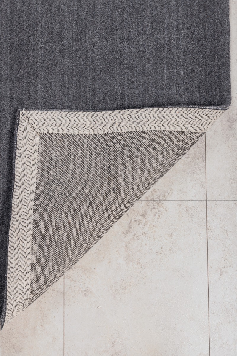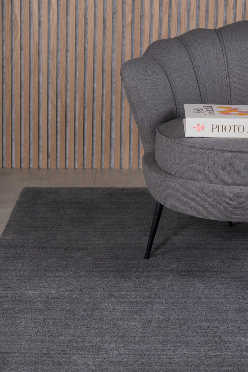 Mjuk och slitstark mörkgrå ullmatta med lyxig känsla. Perfekt för att skapa en varm och elegant atmosfär i ditt hem.