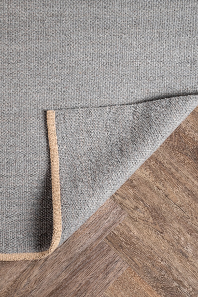 Ljusgrå ull- och bomullsmatta med mjuk, tålig textur som ger värme och stil till ditt hem. Perfekt för vardagsrum eller sovrum.