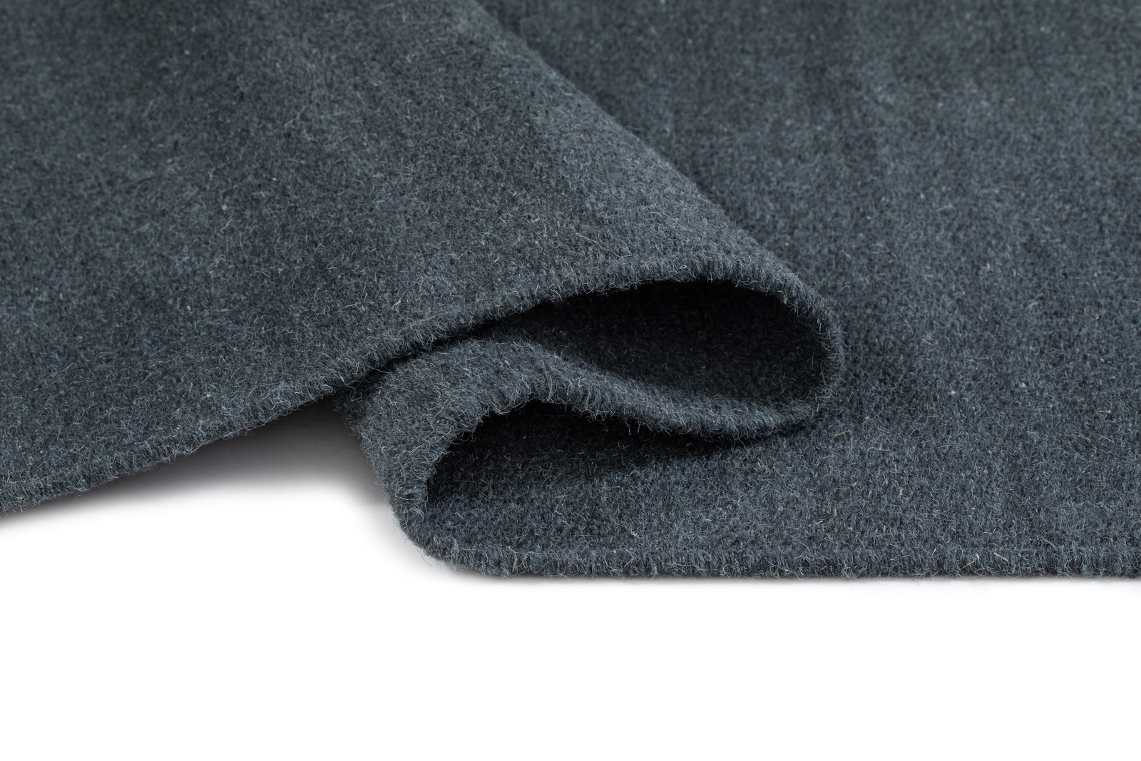 Handvävd kvadratisk ullmatta i stilren grafit med hög slitstyrka och naturlig lyster. Perfekt för vardagsrum, hall eller matplats med hållbar komfort.