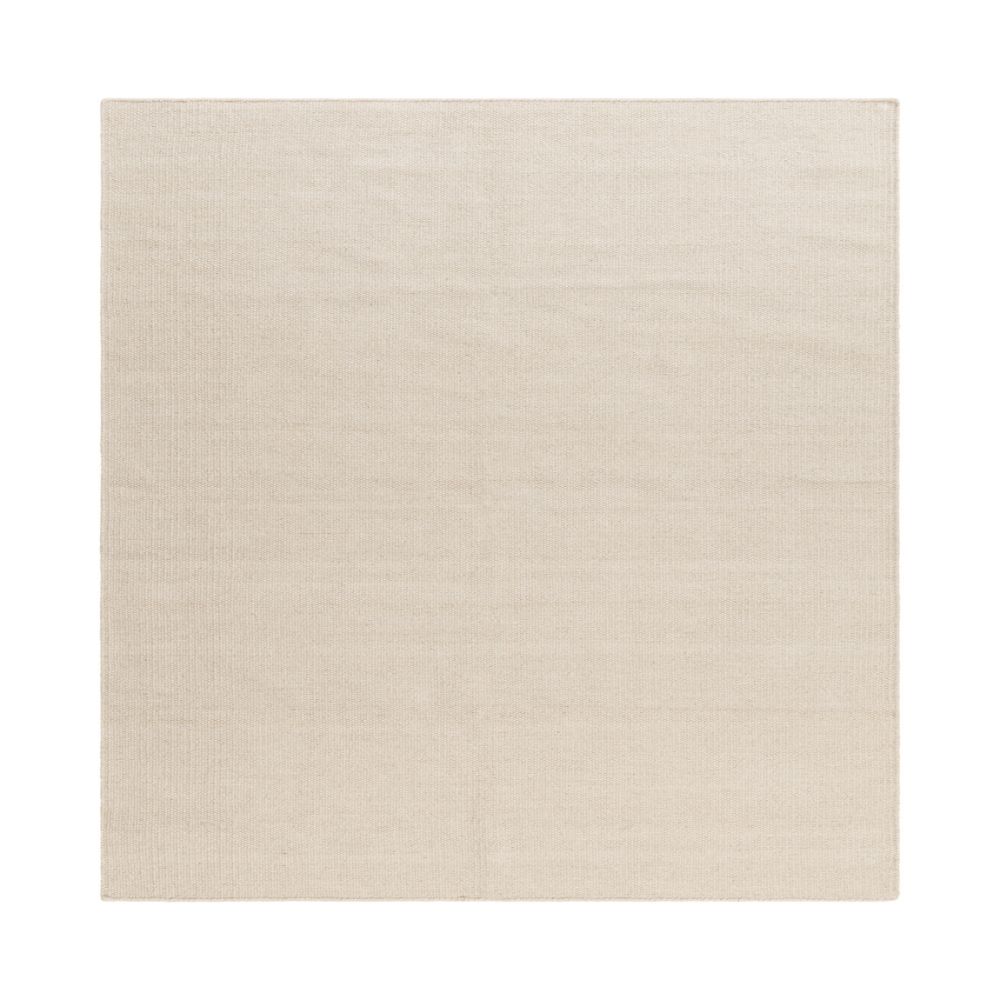 Elegant kvadratisk ullmatta i greige med handvävd kvalitet och slitstark design. Perfekt för varma, harmoniska rum med hållbar och lättskött yta.