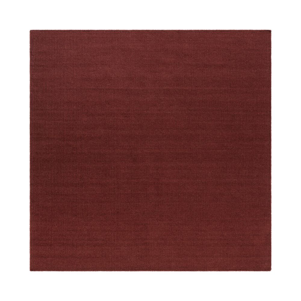 Handvävd kvadratisk ullmatta i djup marsala. Slitstark, smutsavvisande och dubbelanvändbar för lång hållbarhet och stil i ditt hem.