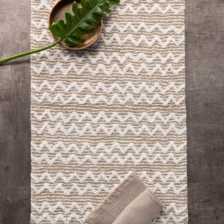 Mattor i bomull, mikrofiber eller syntet med halkfri baksida. De ska tåla fukt och helst vara maskintvättbara.