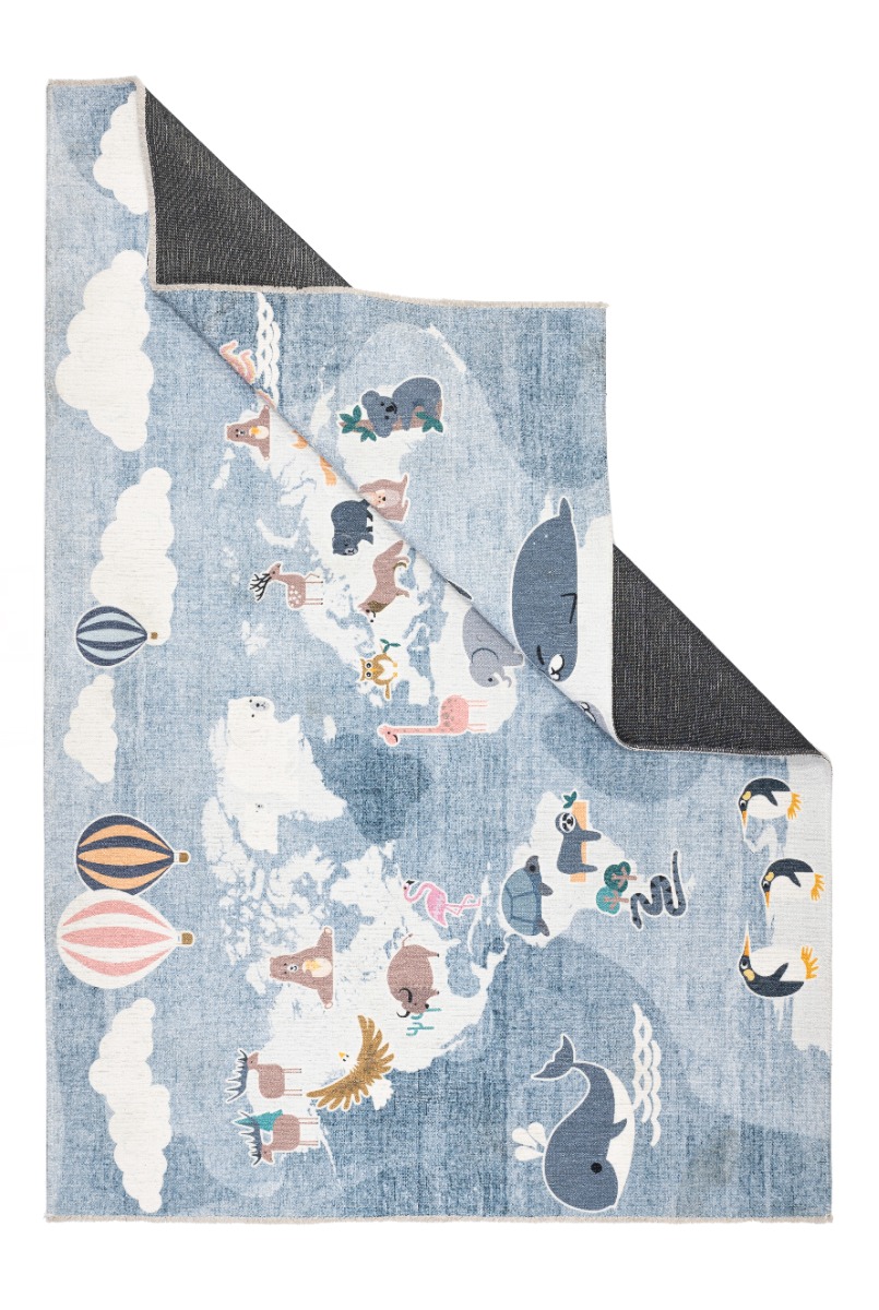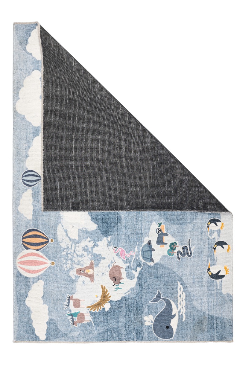 Mjuk och slitstark blå barnmatta i 100% polypropylen. Perfekt för lek och mys med bekväm tjocklek och lättskött yta.