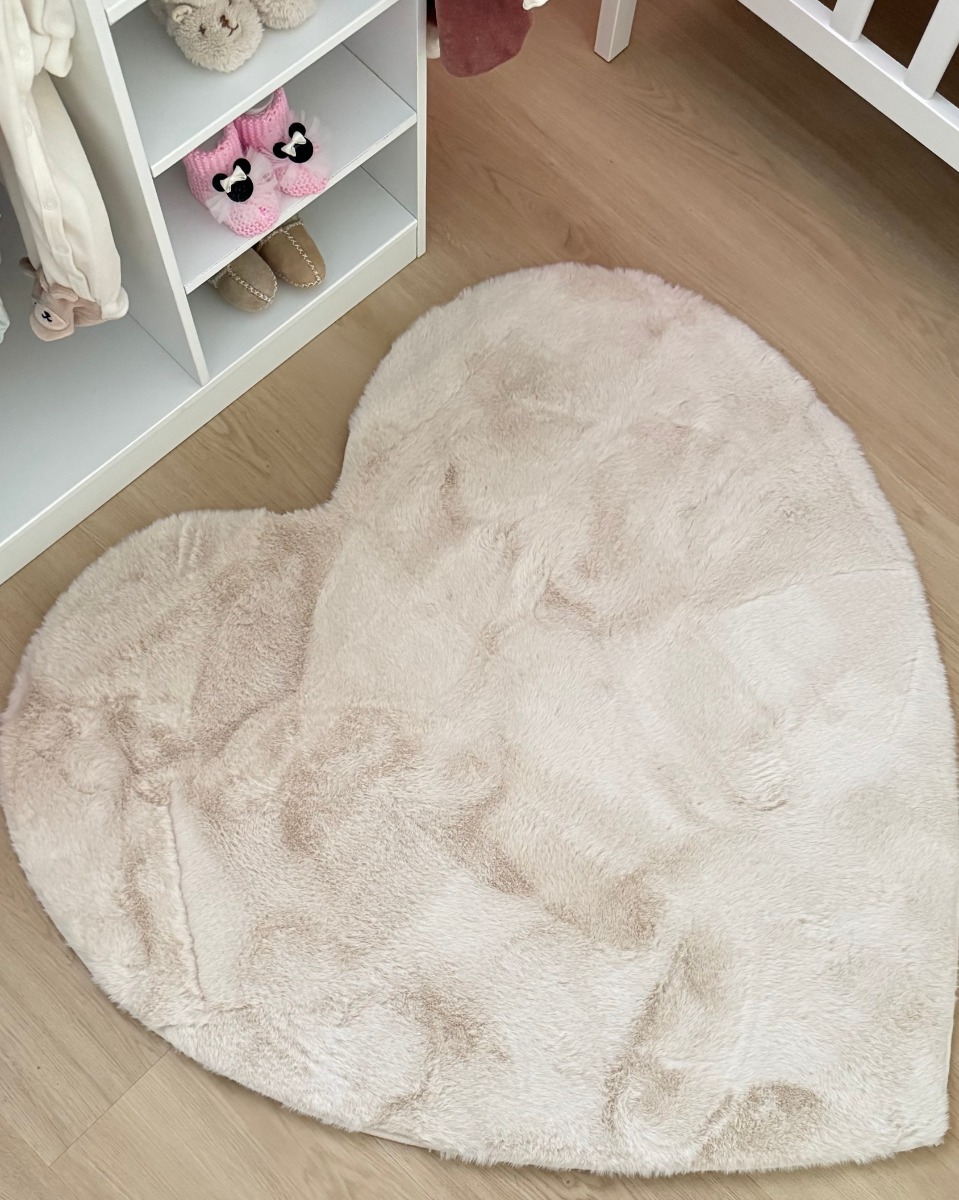 Barnmatta Mjuk Päls-look Rabbit Heart Ljusbeige