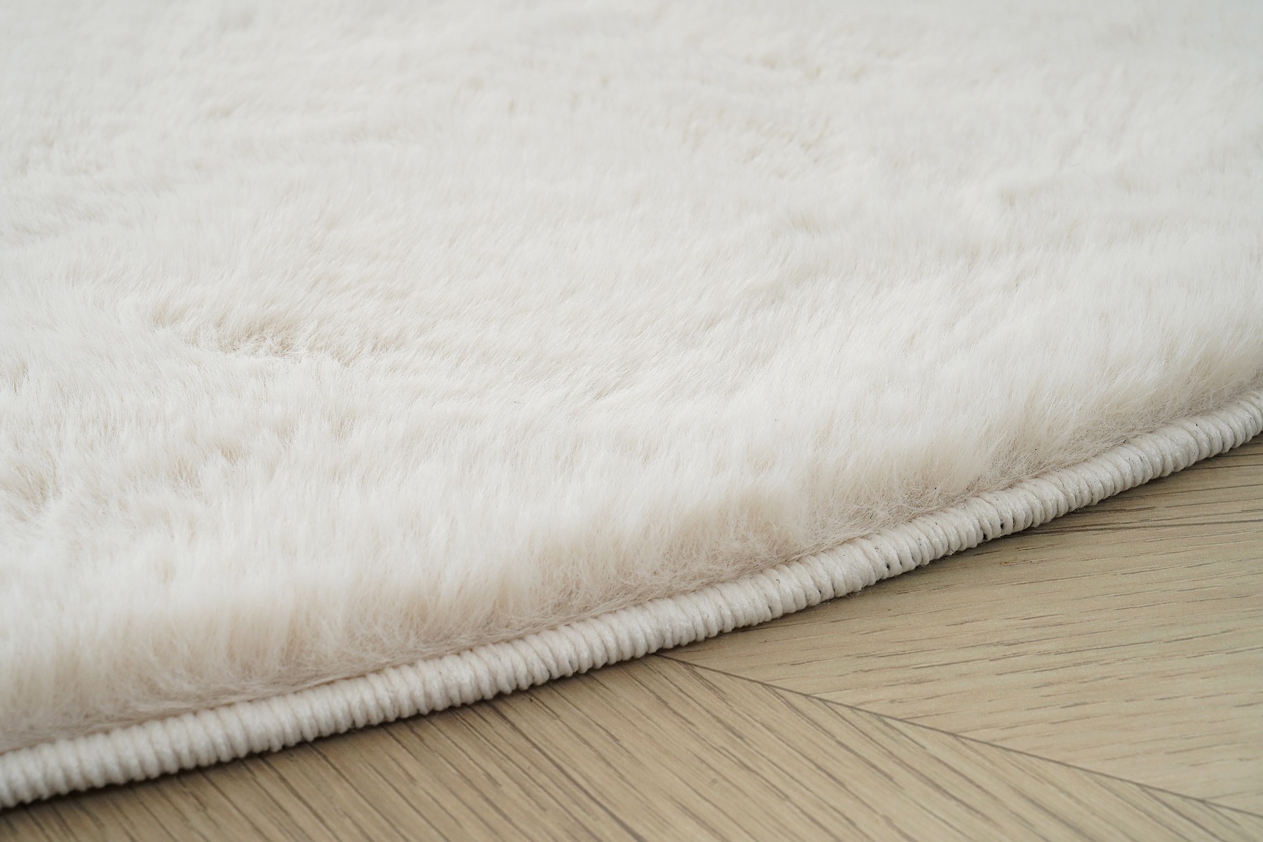 Mysig och allergivänlig barnmatta i mjuk päls-look. Den fluffiga och ljusbeige ytan skapar en trygg och inbjudande lekyta för barnen.