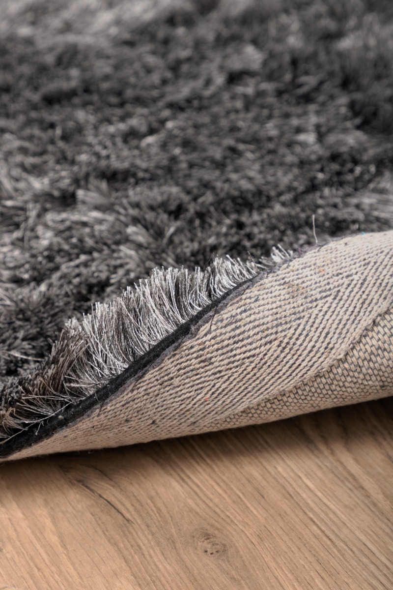 Lyxig och mjuk grå ryamatta i polyester med lång lugg för extra komfort och stil. Perfekt för att skapa en varm och inbjudande känsla i hemmet.