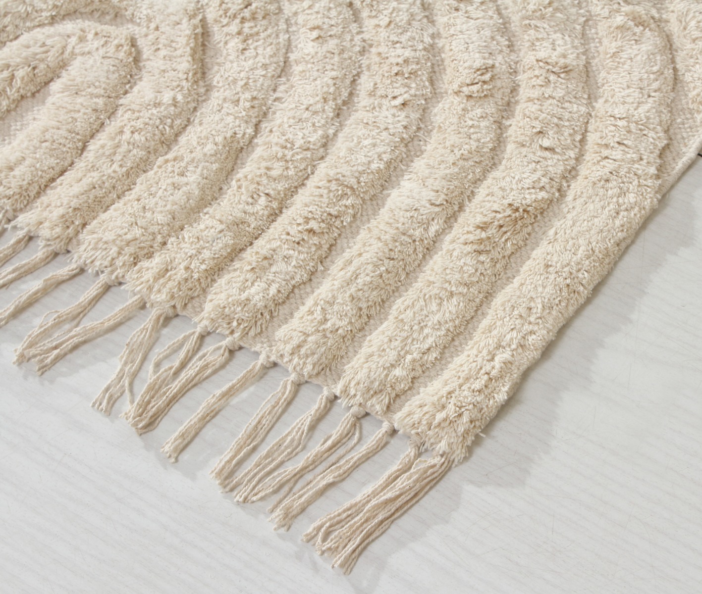 Wilma Bene bomullsmatta i beige erbjuder mjuk komfort och slitstyrka. En stilren och lättskött matta som passar i alla rum och kompletterar varje inredning.