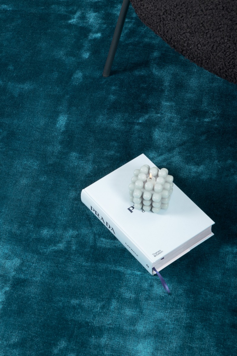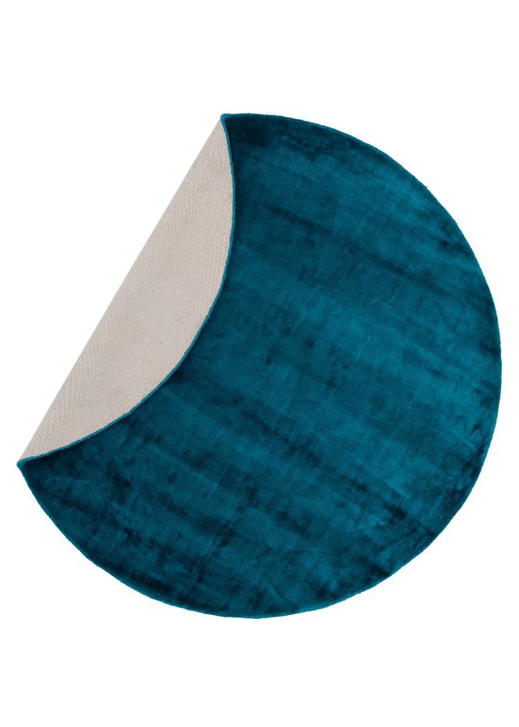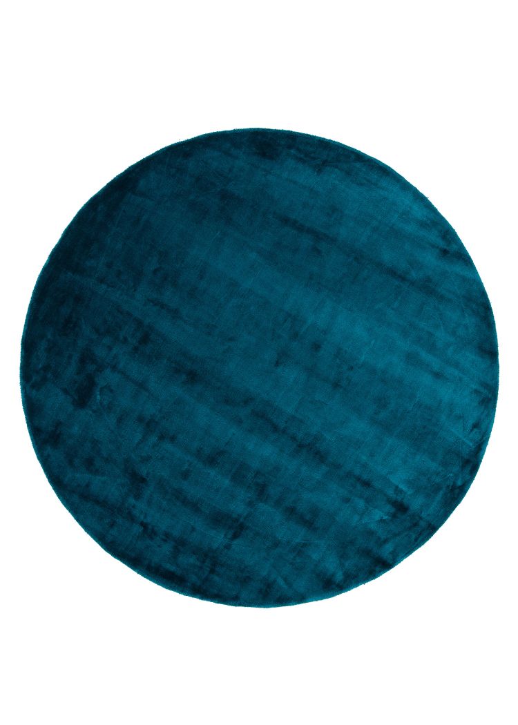 Blå rund matta i mjuk viskos och bomull. Cirka 10 mm tjock för skön komfort och elegant färg som lyfter ditt rum enkelt.