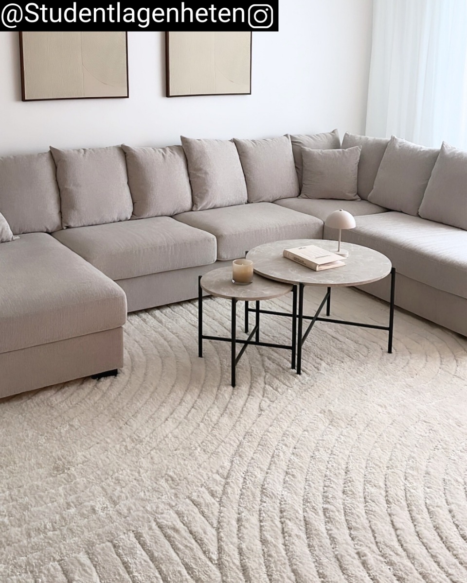 Denna krämfärgade ryamatta kombinerar komfort med stil och är utformad för att ge en inbjudande känsla i ditt hem. Polypropylenmaterialet säkerställer en lättskött och tålig matta som passar för både lugna och aktiva utrymmen. Mattan är idealisk för att komplettera en skandinavisk eller neutral inredningsstil. För att underhålla mattan rekommenderas regelbunden dammsugning och fläckborttagning med milda rengöringsmedel. Uppgradera dina golv med en mjuk och elegant ryamatta som både känns och ser fantastiskt ut.
