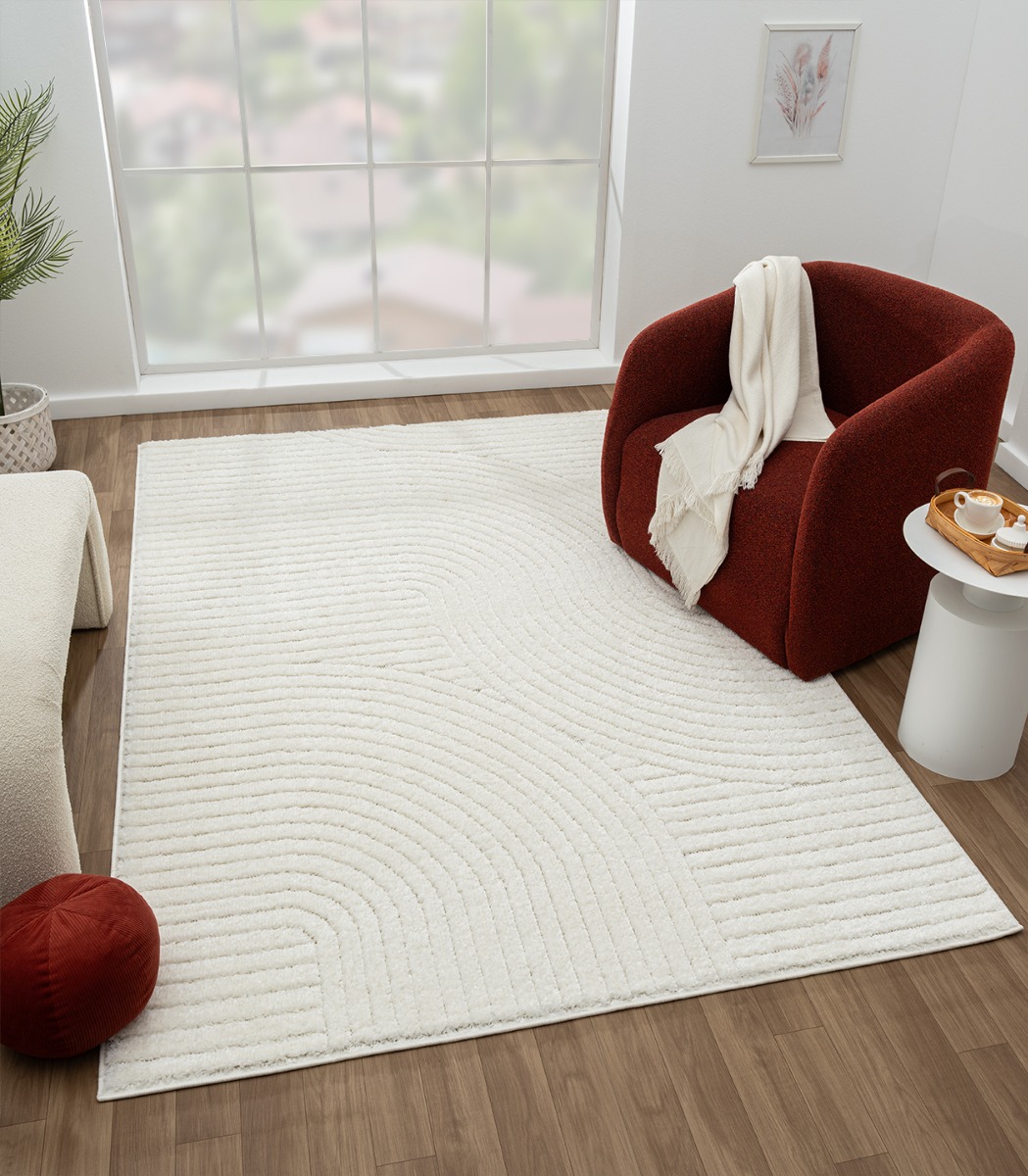 Elegant och mjuk ryamatta i krämfärg för alla rum