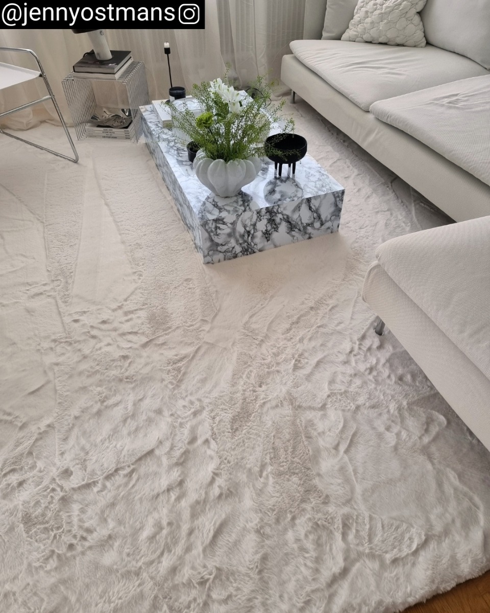 Mjuk och elegant tvättbar pälsmatta i offwhite. Gjord i slitstark polyester med lyxig pälsstruktur som ger både komfort och stil till ditt hem.