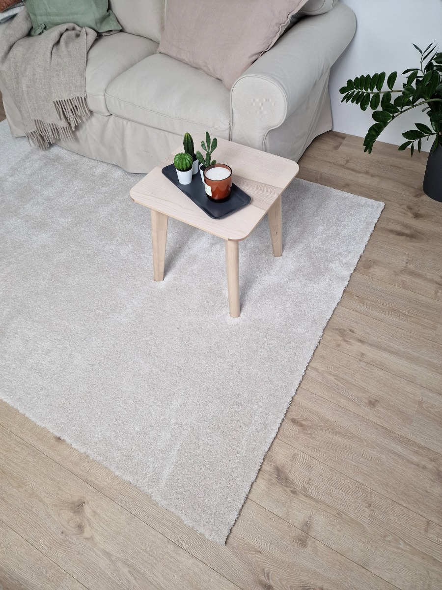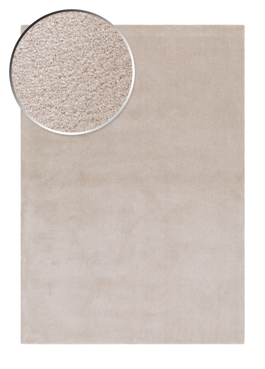 Mjukt och skimrande cremefärgat ryamatta i supersoft microfiber. Maskintvättbar och perfekt för vardagsrum och sovrum med elegant, ljus finish.