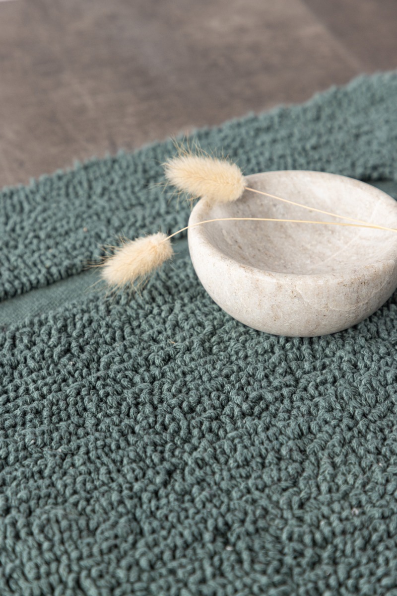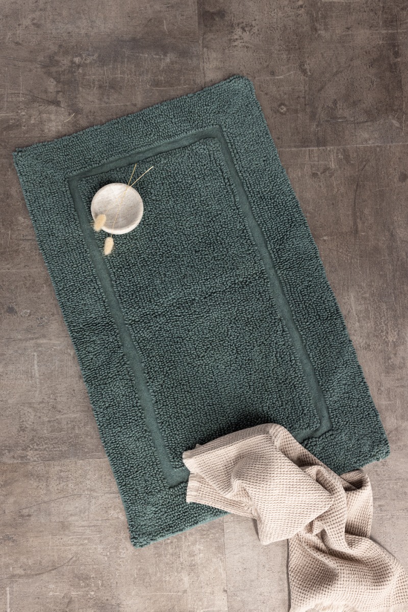 Mjukt och tjockt grönt bomullsmatta för badrum ger komfort och stil. Lätt att tvätta och passar alla badrum för en varm och säker yta.