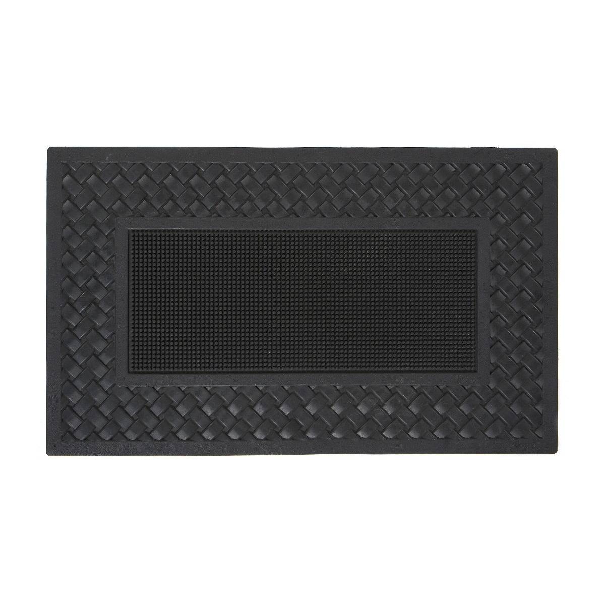 Flätad svart dörrmatta i polypropylen med halkfri gummibaksida. Perfekt för smutsupptagning och säker placering vid entrén.