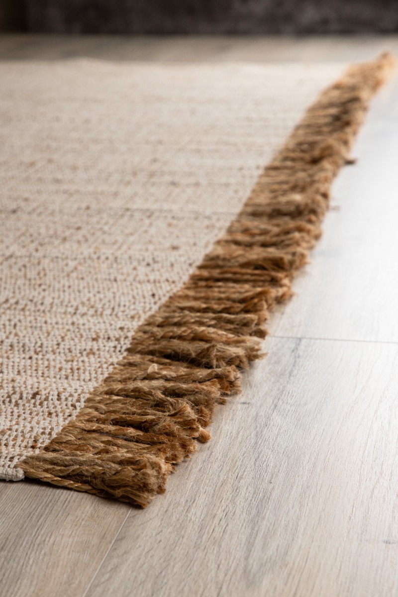 Naturlig och hållbar jutematta i offwhite. Robust jute med dekorativa fransar skapar en bohemisk och ombonad känsla i ditt hem.