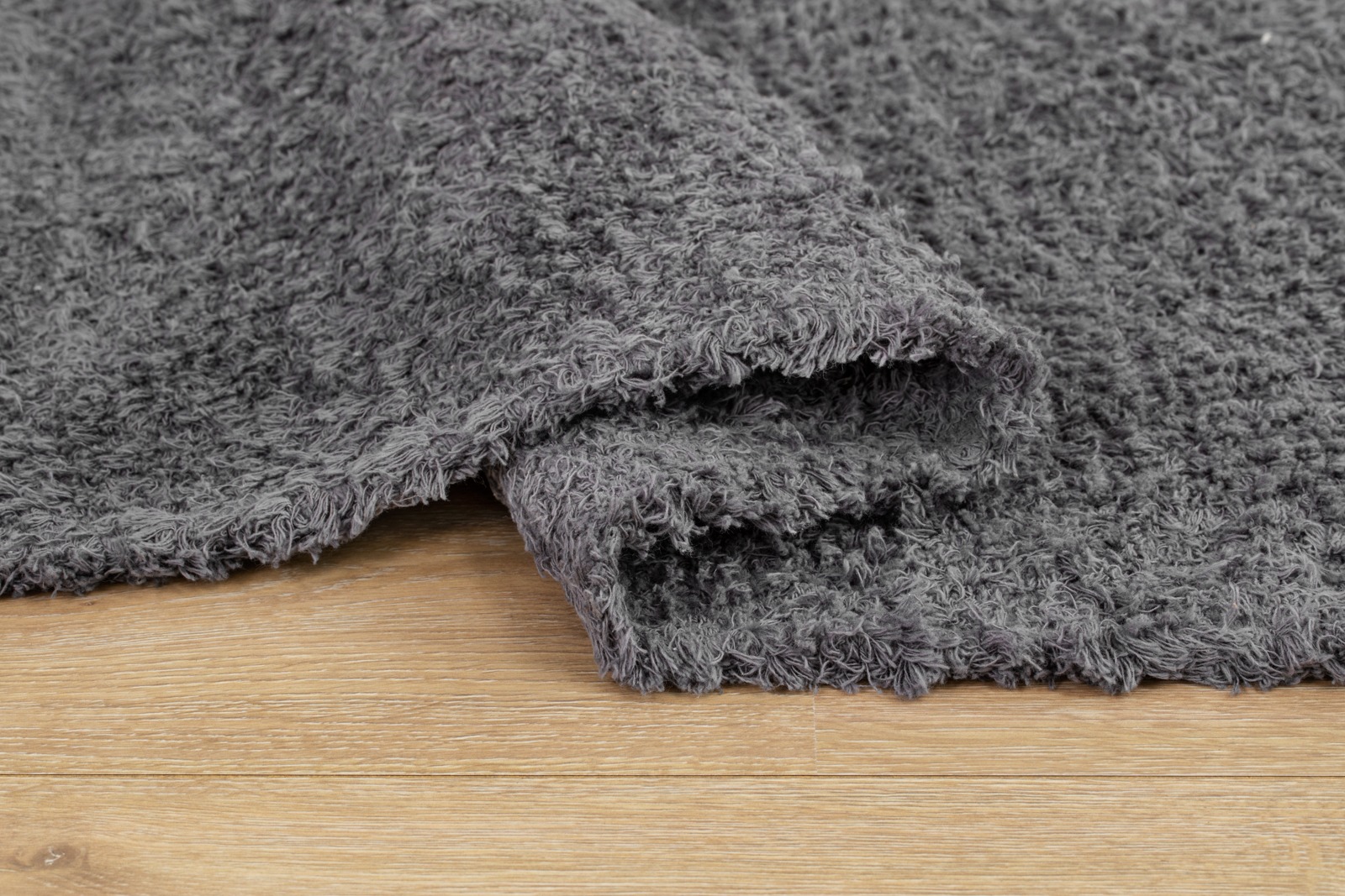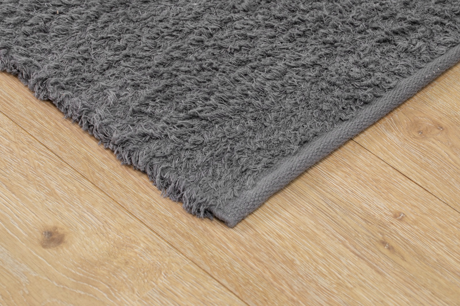 Mjukt handvävd bomullsmatta i stilren grå ton. Lättskött, etiskt tillverkad och perfekt för vardagsrum eller hall.