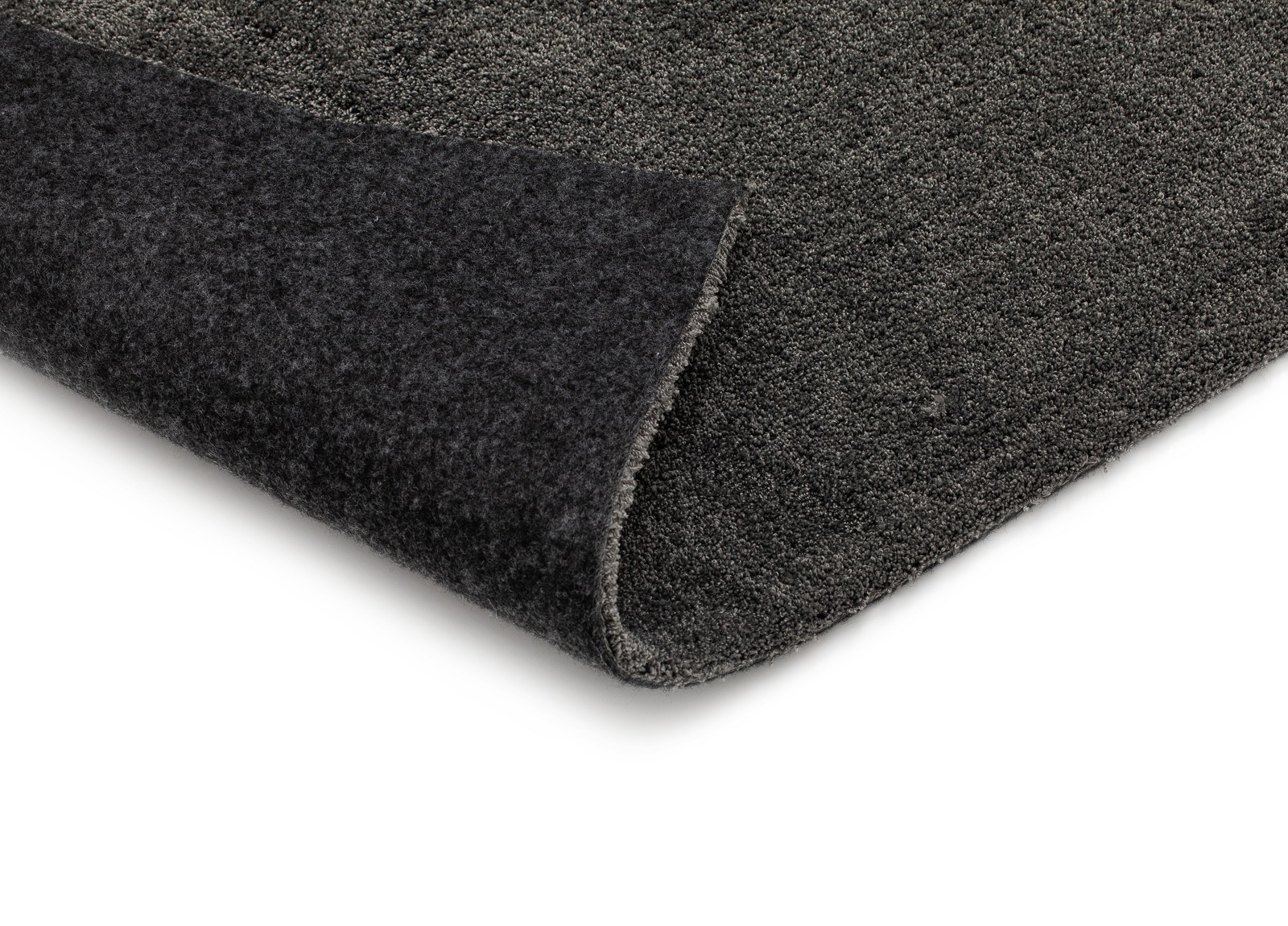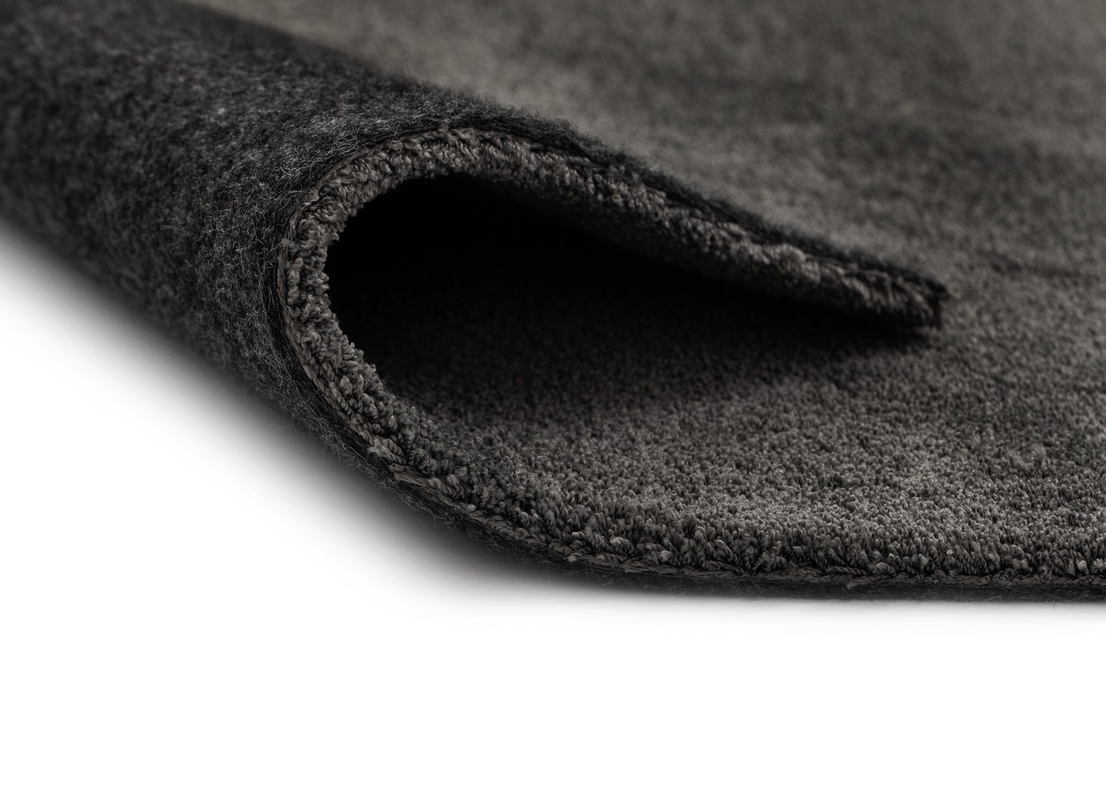 Mjuk och tvättbar ryamatta i elegant grafitgrått. Klippbar, filtskyddad och perfekt för värmegolv. En stilren och praktisk matta för alla rum.
