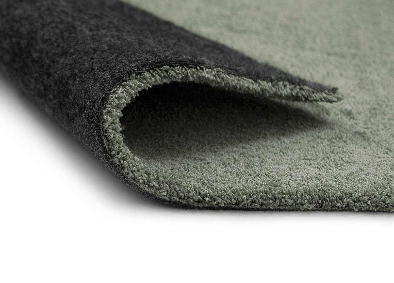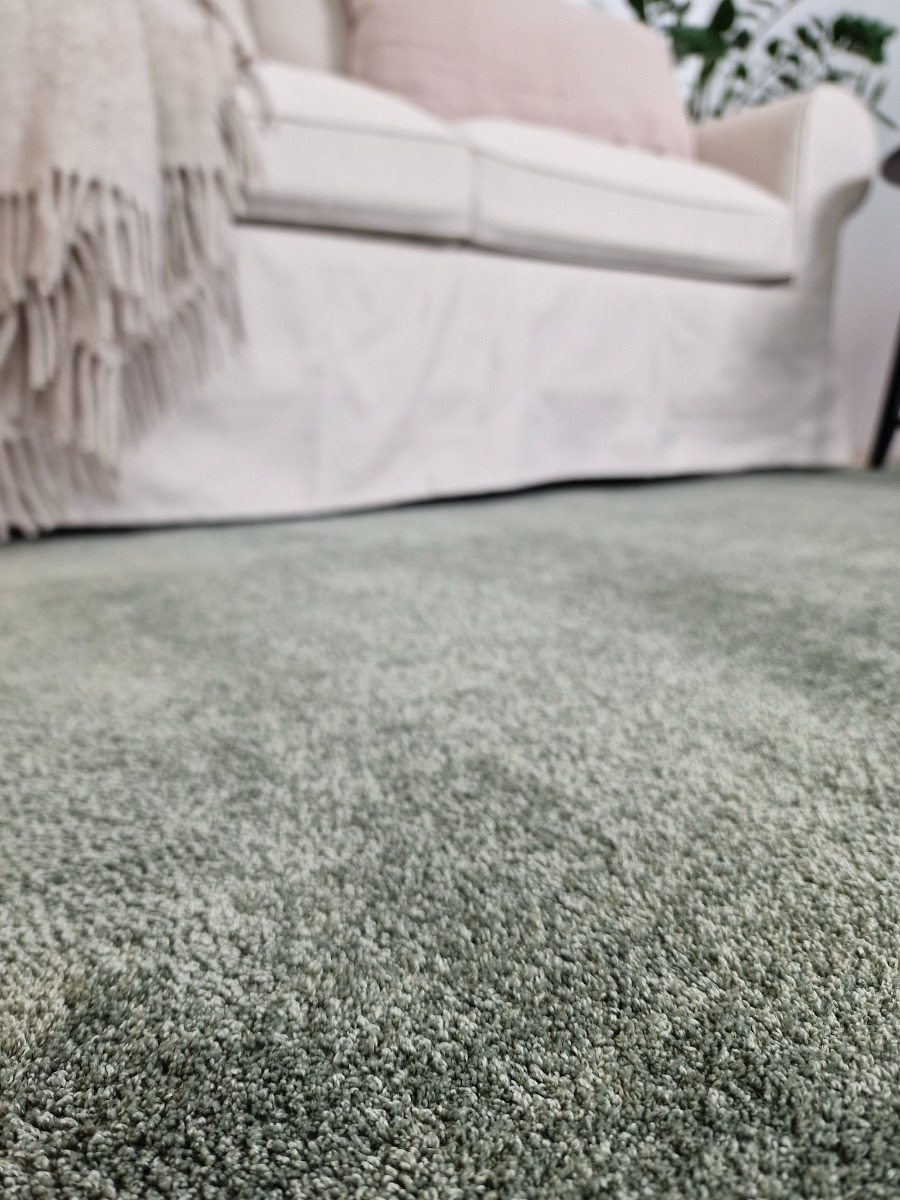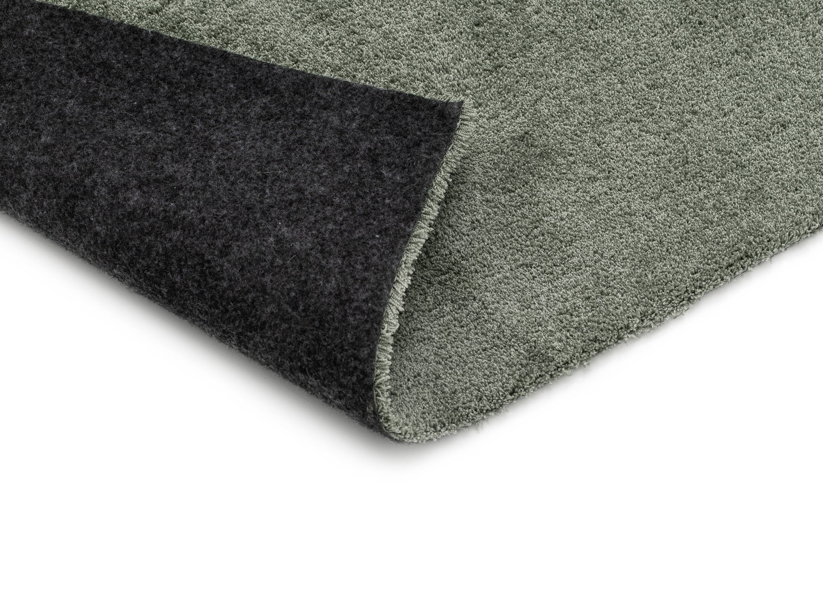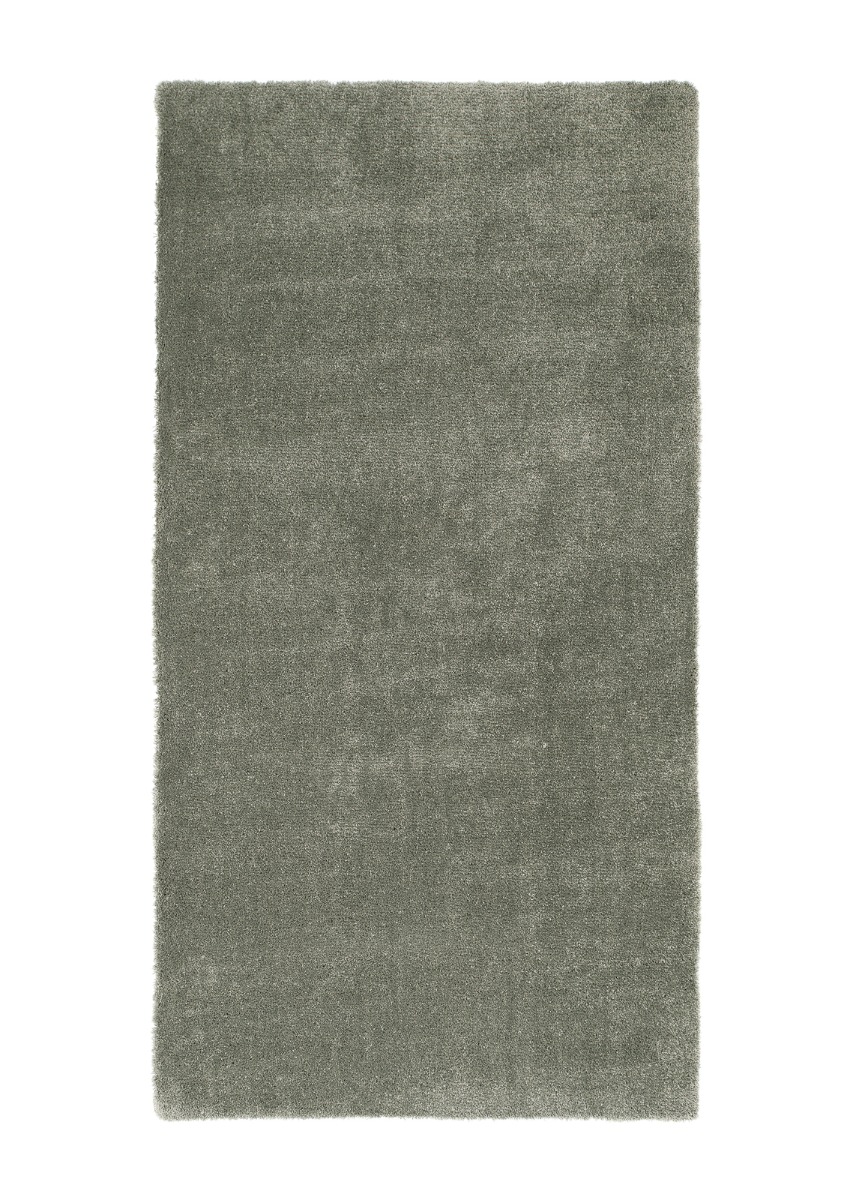 Mjuk och klippbar grön gångmatta i microfiber med filtbaksida. Maskintvättbar och golvvärmekompatibel för naturlig komfort och lättskött elegans.