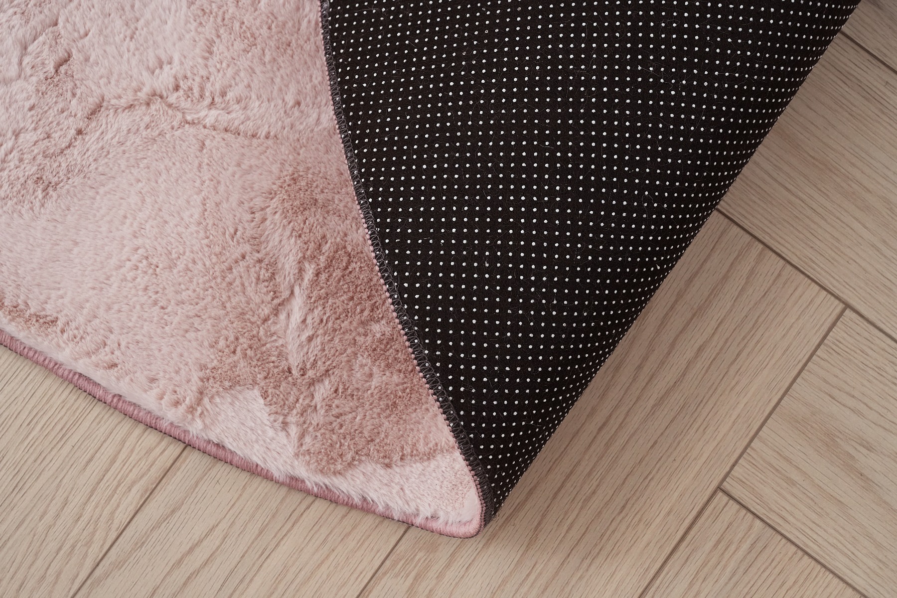 Mjukt och allergivänligt gångmatta i ljusrosa polyester. Kortklippt, lättskött och tvättbar för en varm och inbjudande känsla i ditt hem.