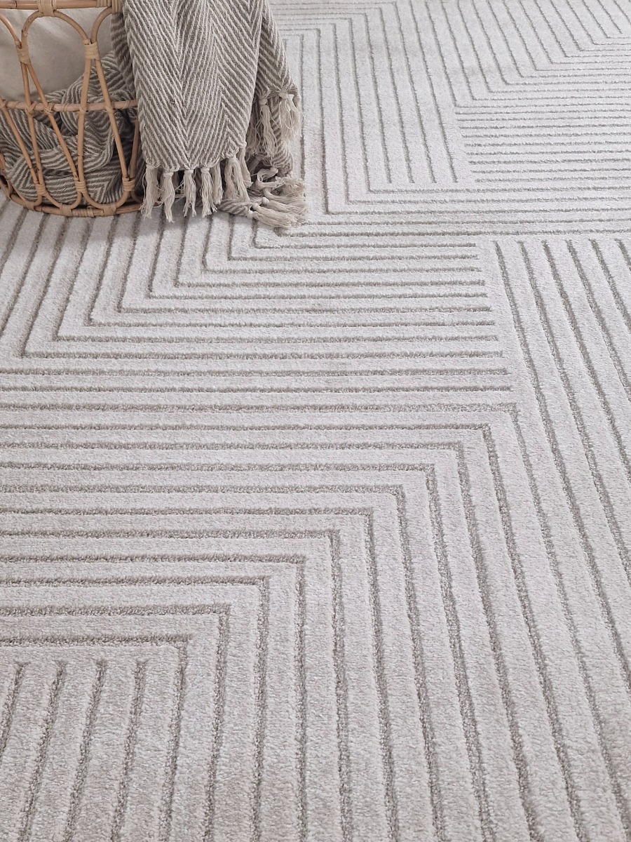 Tesina modern gångmatta i linnefärg kombinerar mjukhet med hållbarhet. Stabil jutevävbaksida och tidlös design för alla hem.