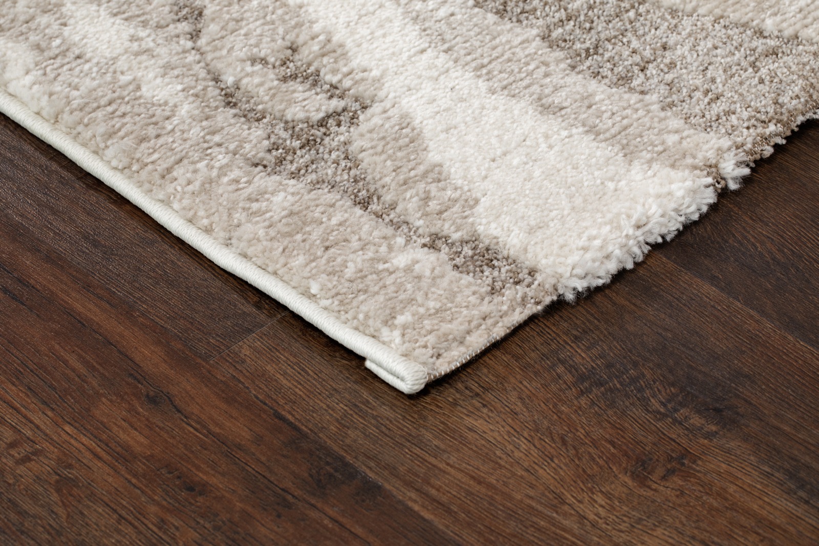 Elegant gångmatta i krämfärg med tidlös Virell-design. Slitstark, mjuk och Oeko-Tex certifierad – perfekt för hemmets torra utrymmen.