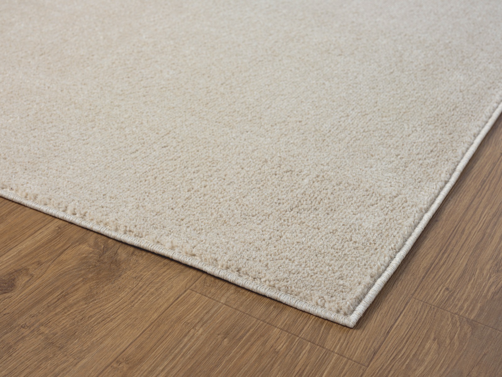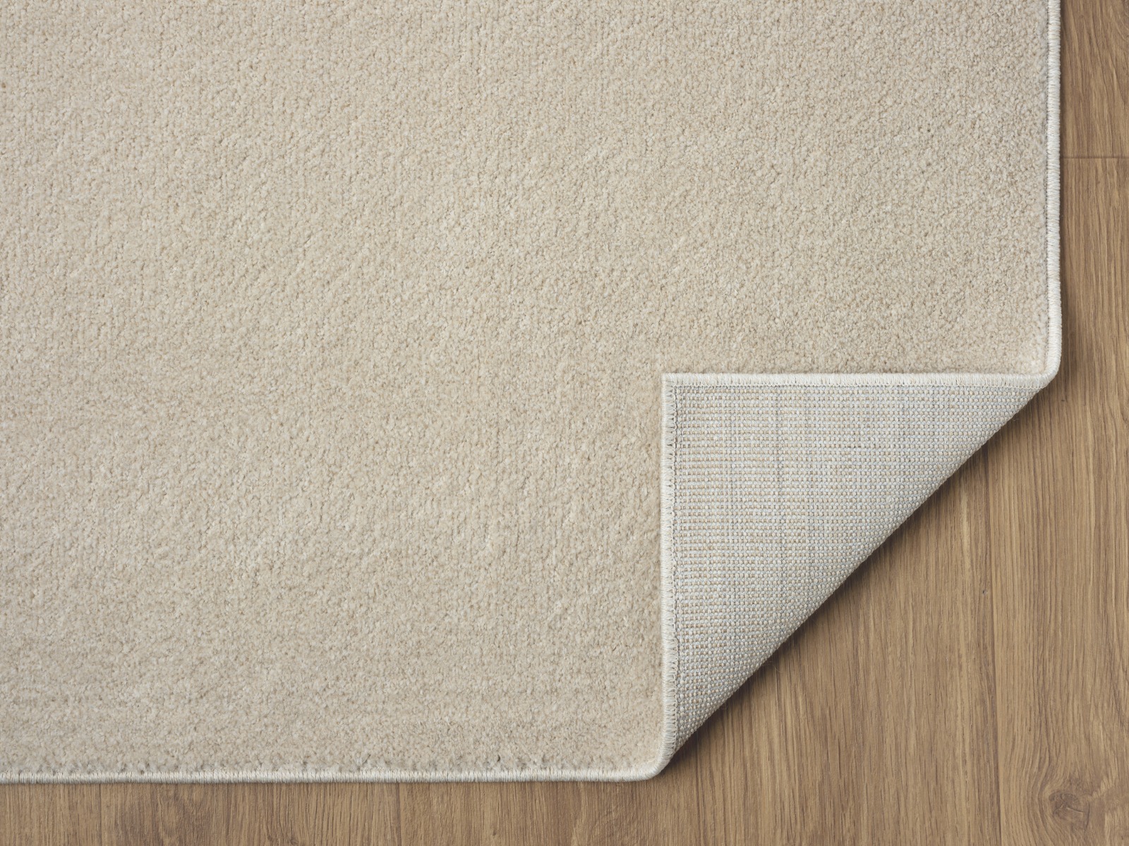 Mjukt beige gångmatta i slitstark polypropylen med ryamaterial och behaglig tjocklek på 12 mm. Ger komfort och stil till hemmet.