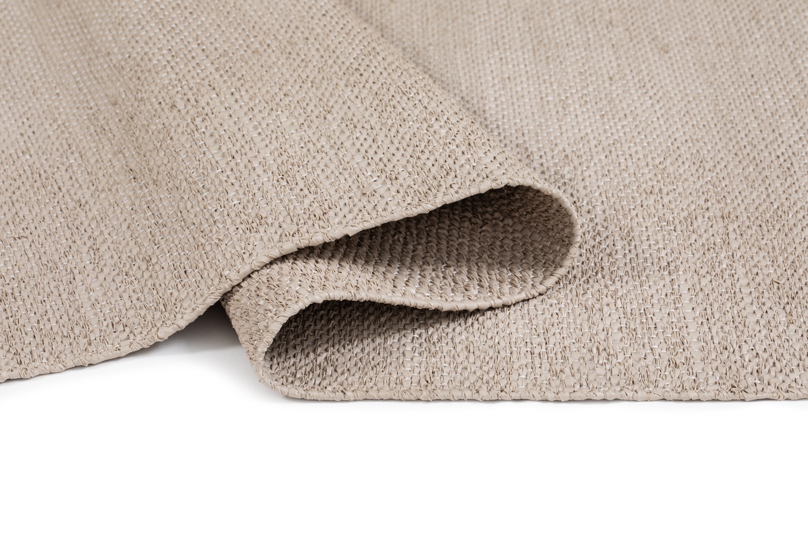 Handvävd och vändbar gångmatta i linnefärgad PVC som kombinerar hållbarhet med mjuk komfort. Perfekt för ljusa, skandinaviska hem och enkel att tvätta.