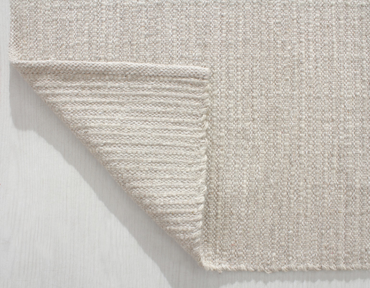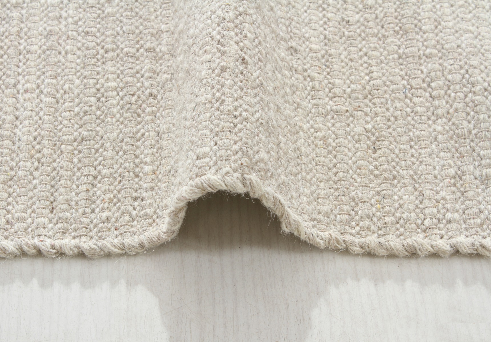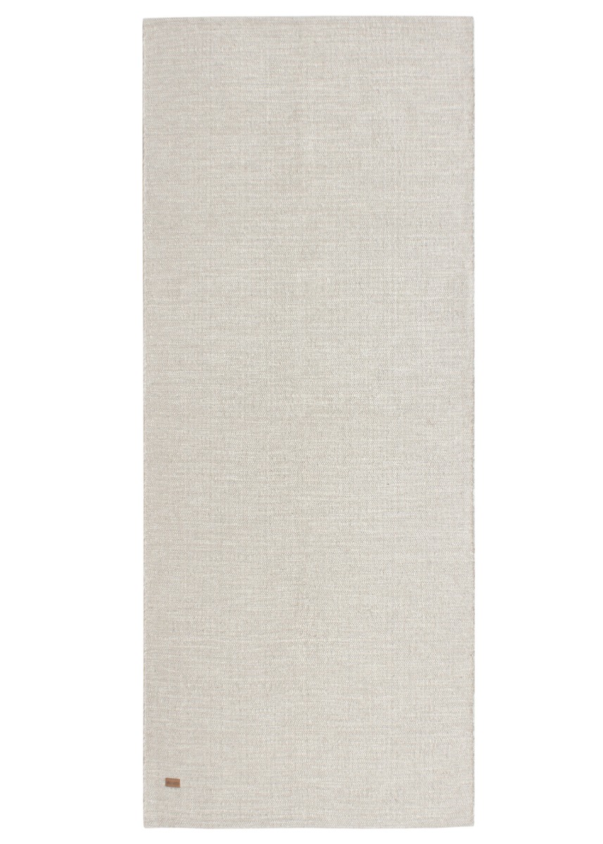 Molly ullmatta i kräm och grå kombinerar hållbarhet med mjuk komfort. En slitstark och lättskött gångmatta som lyfter varje rum med modern stil.
