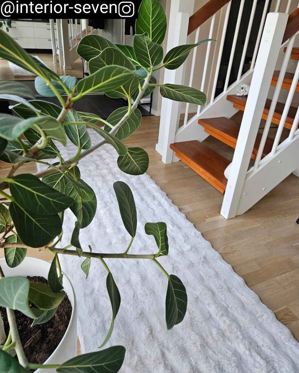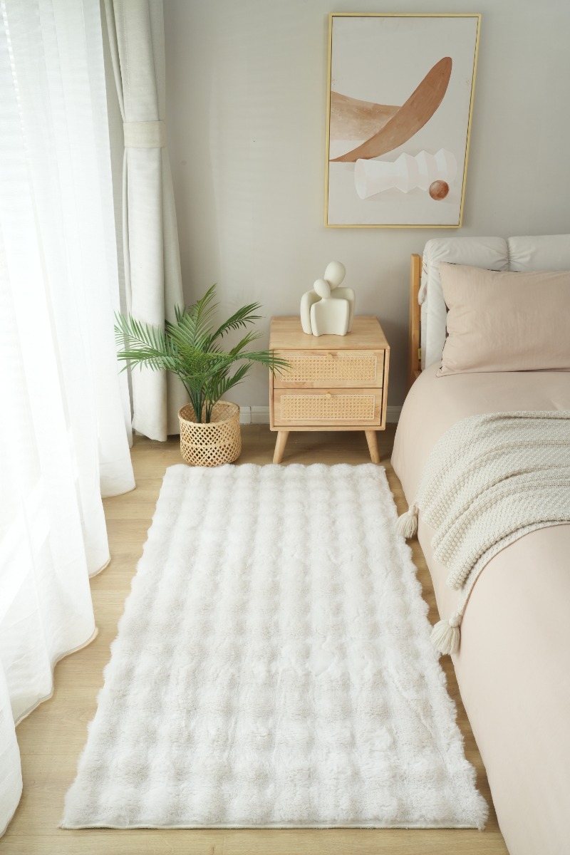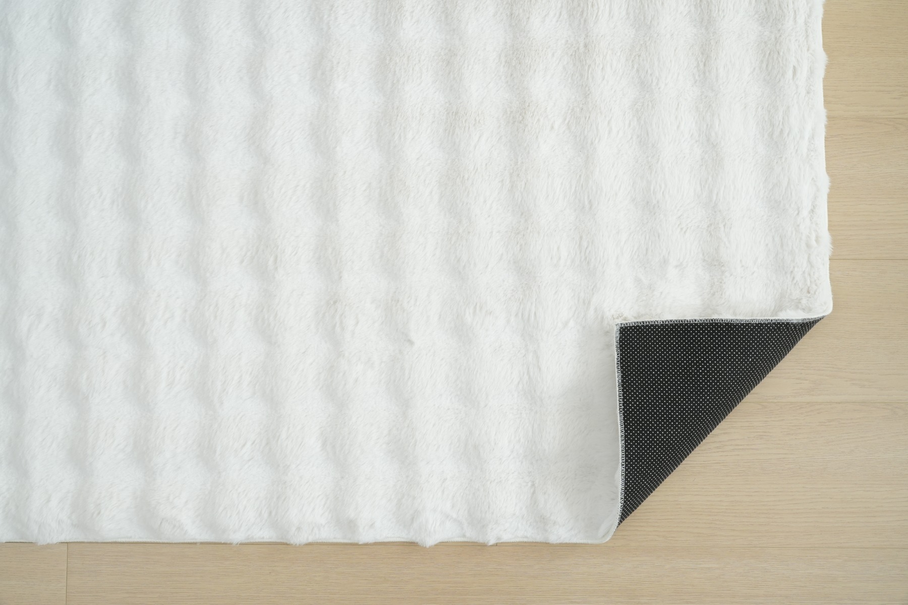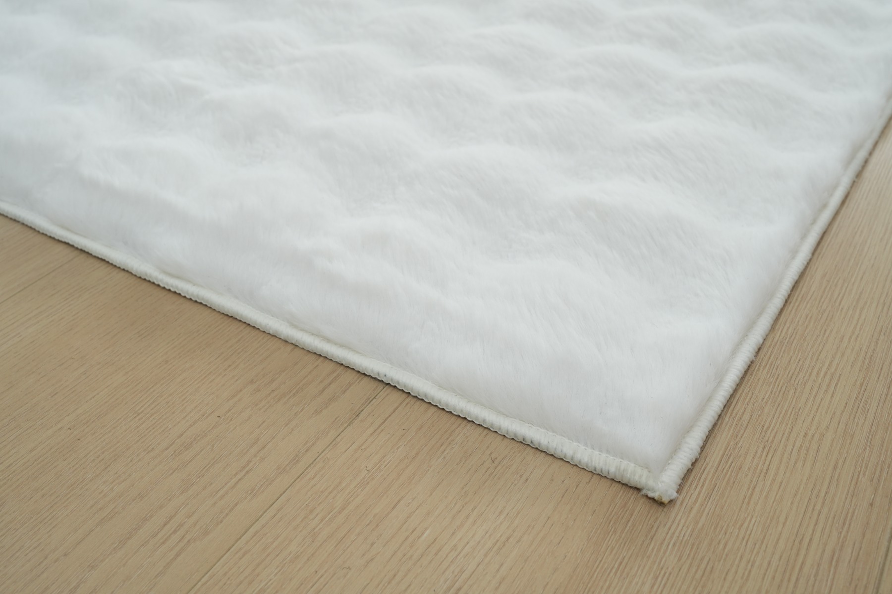 Lugnt offwhite pälsmatta med tjock, mjuk finish. Tillverkad i tvättbar polyester för enkel skötsel och långvarig komfort.