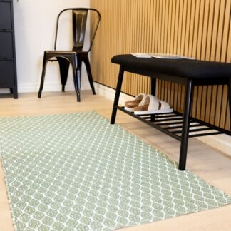I hallen leder en gångmatta besökare genom rummet och skyddar golvet från slitage. I köket avlastar den ryggen vid diskbänken. I korridorer bryter den av eko och ger ett lugnare intryck.