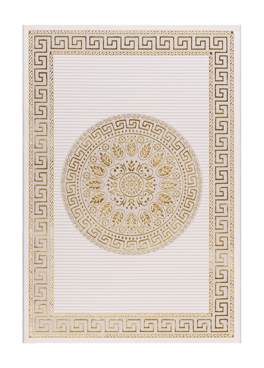 Slitstark modern matta i creme och guld med mjuk kort lugg och fläckresistent yta. Perfekt för stilrena och ombonade rum med hög användarvänlighet.