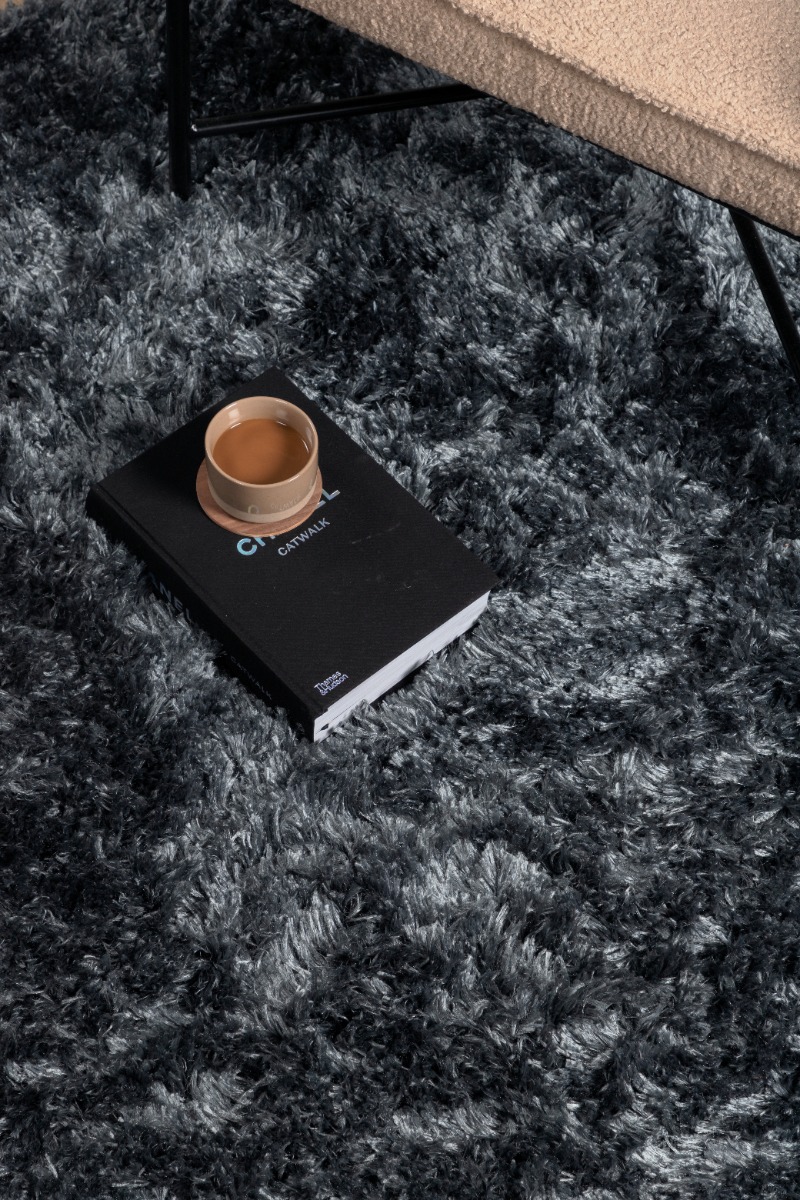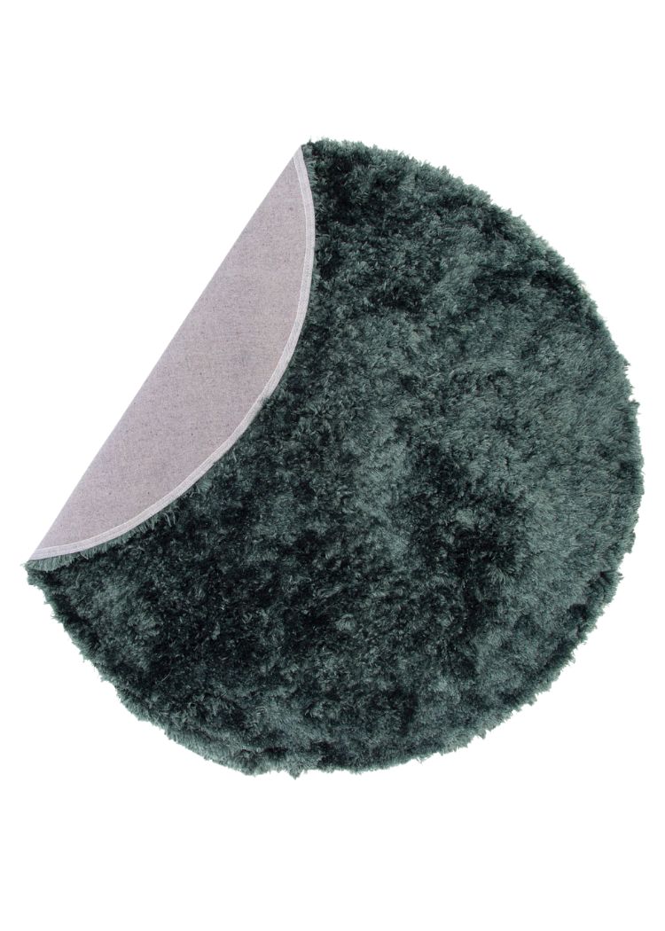 Rund ryamatta i mjuk grön polyester med tjock 60 mm lugg som erbjuder komfort och stil till hemmets alla rum. Enkel att underhålla och perfekt för moderna hem.