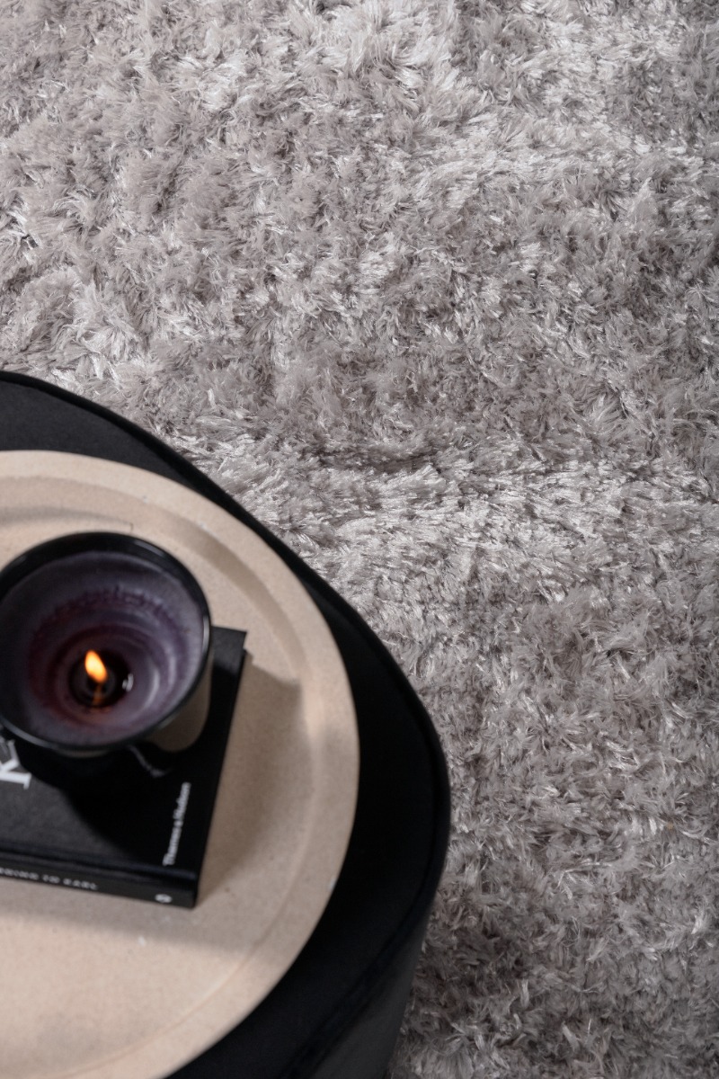 Mjukt ryamatta i skimrande silver med hög lugg för extra komfort och stil. Perfekt för att skapa en varm och elegant känsla i ditt rum.