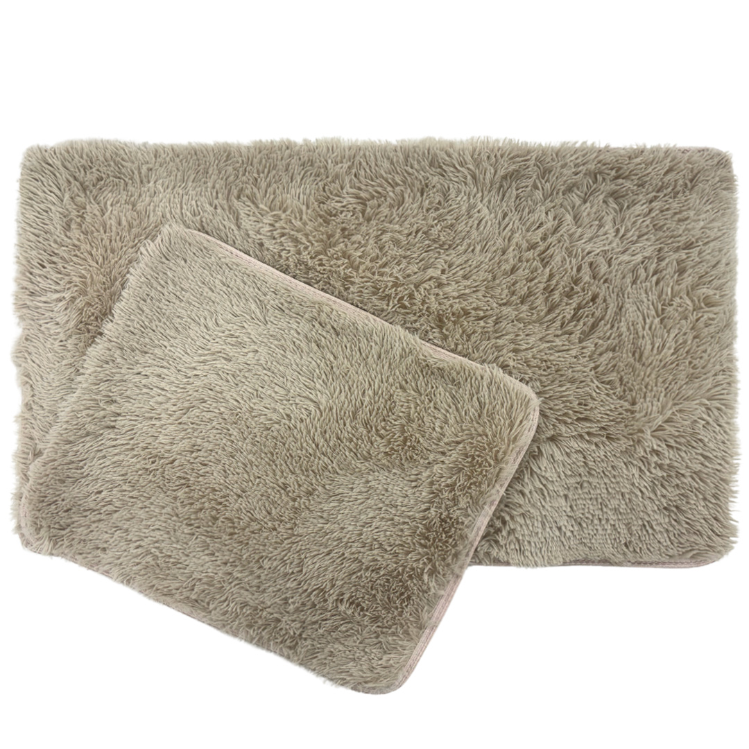 Mjuka beige badrumsmattor i 2-pack med halkfri undersida och extra tjocklek för maximal komfort. Stilrent och praktiskt till badrummet.