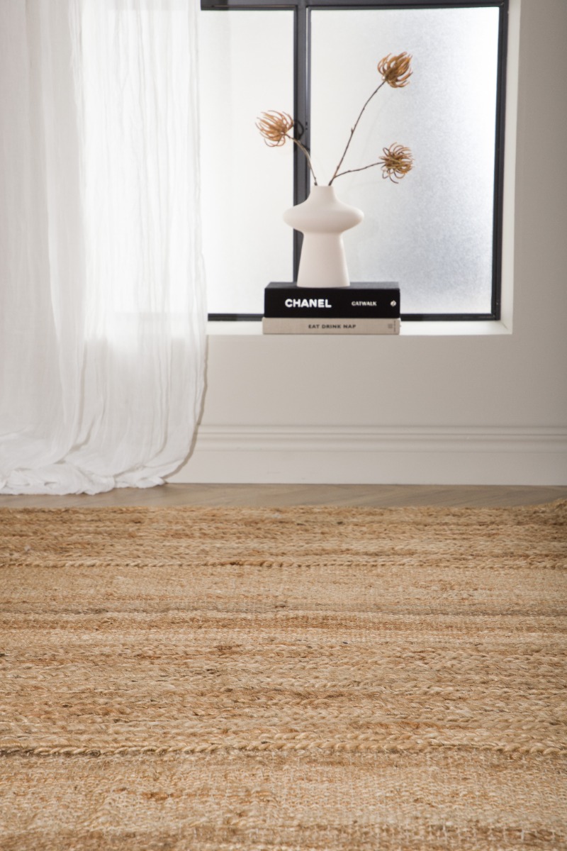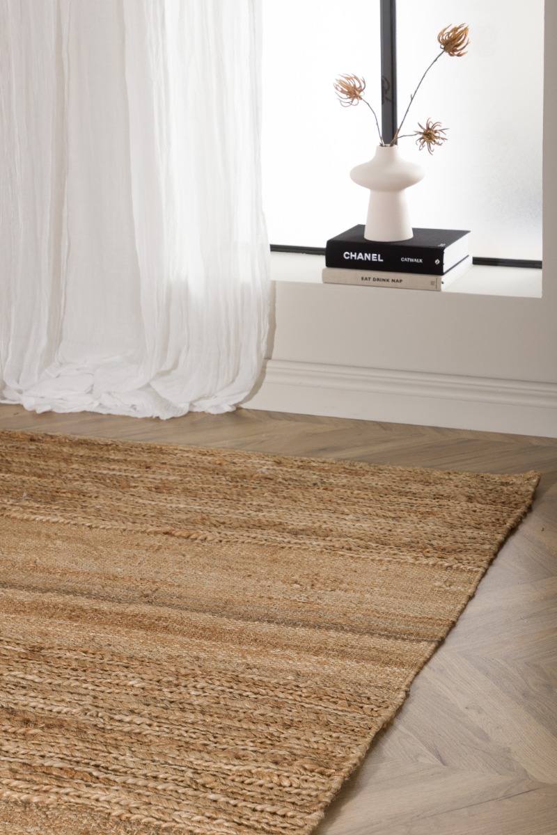 Handvävd jutematta i naturlig ton som erbjuder hållbarhet och mjukhet. Passar perfekt i alla rum för en varm, ombonad känsla.