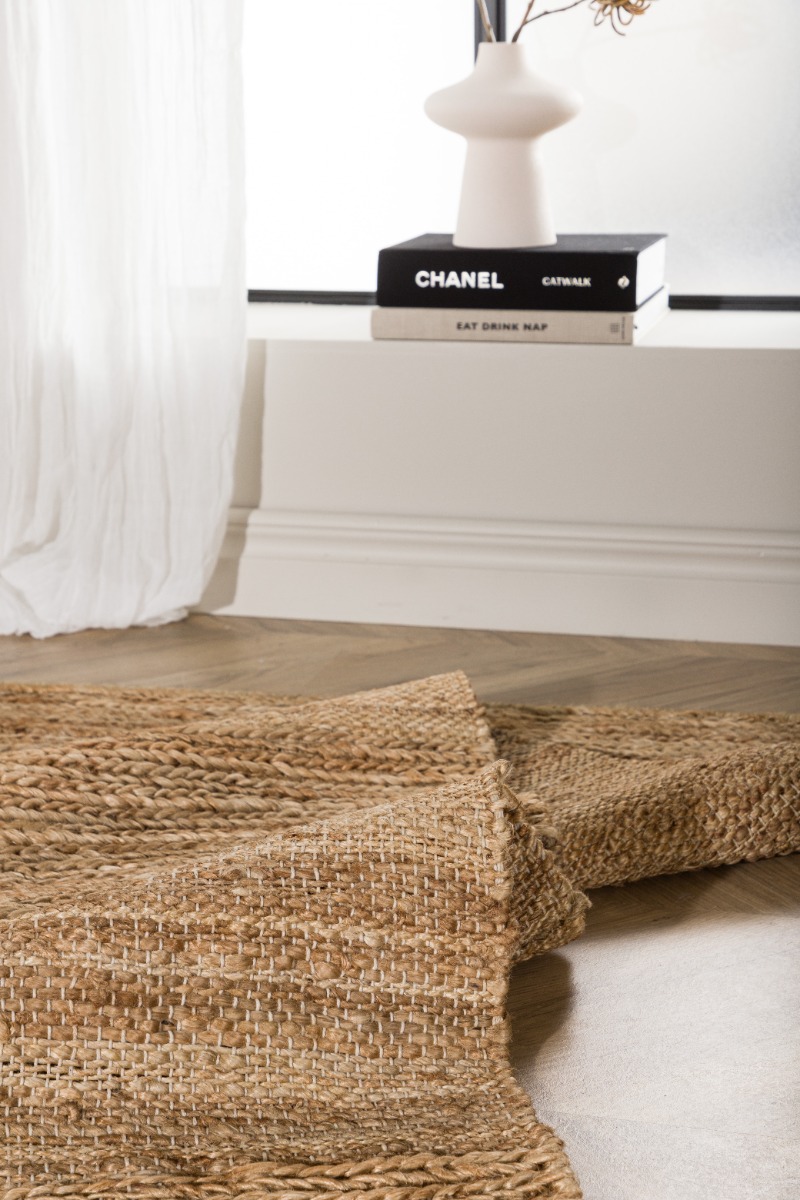 Naturlig och slitstark handvävd jutematta för alla rum