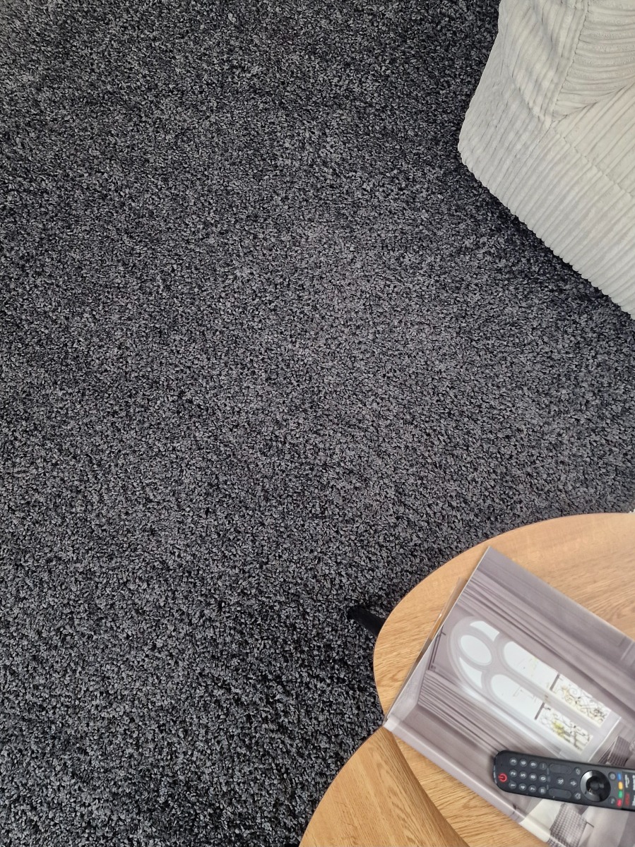 Mjuk antracitgrå ryamatta i slitstark polypropylen med antistatisk yta. Skapar en harmonisk och elegant atmosfär i alla rum.