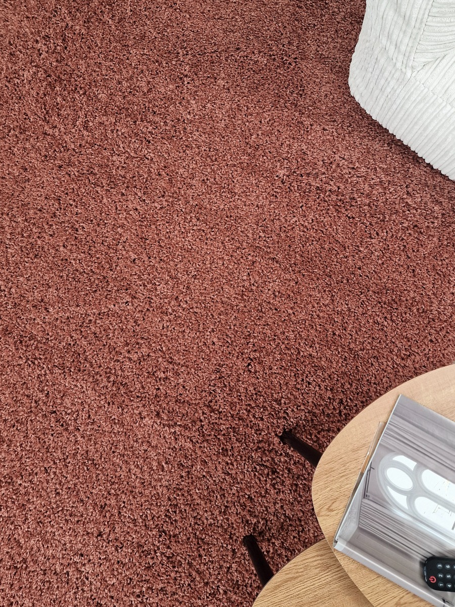 Rostfärgad maskinvävd ryamatta i 100% polypropylen med mjuk lyster och antistatiska egenskaper. Ger värme och stil till alla rum.