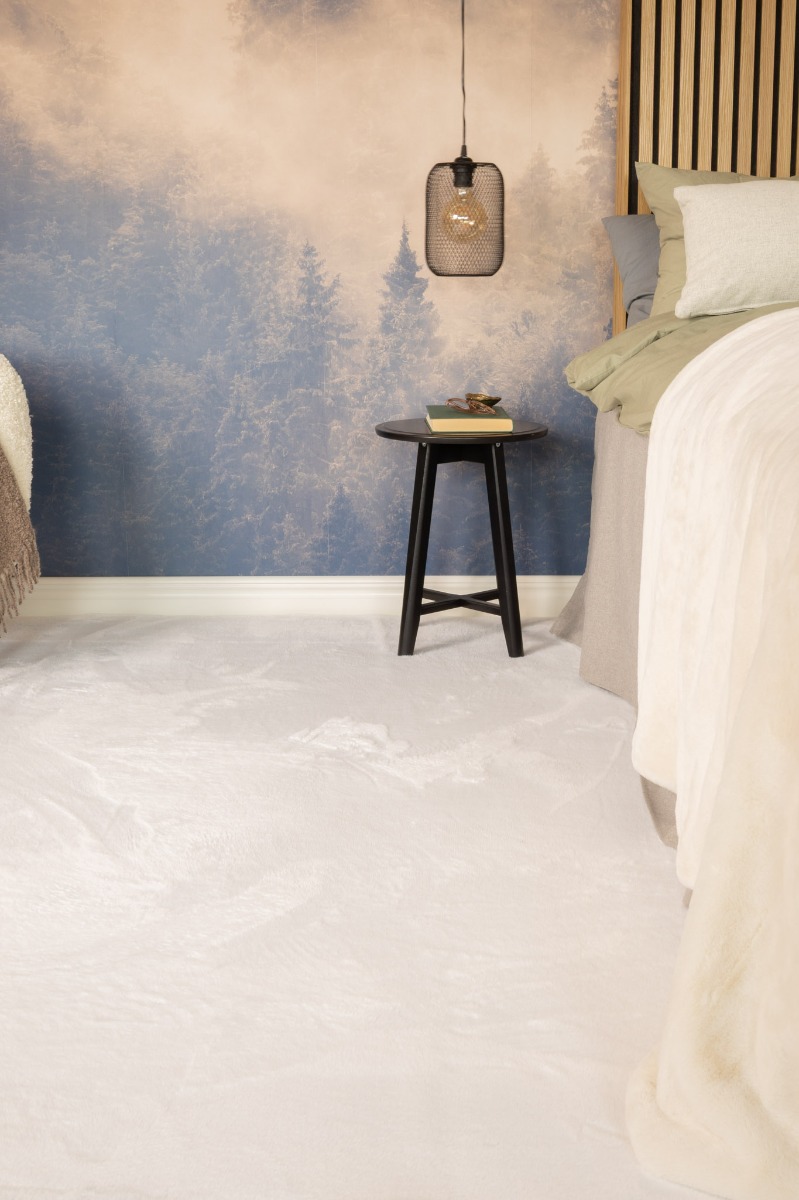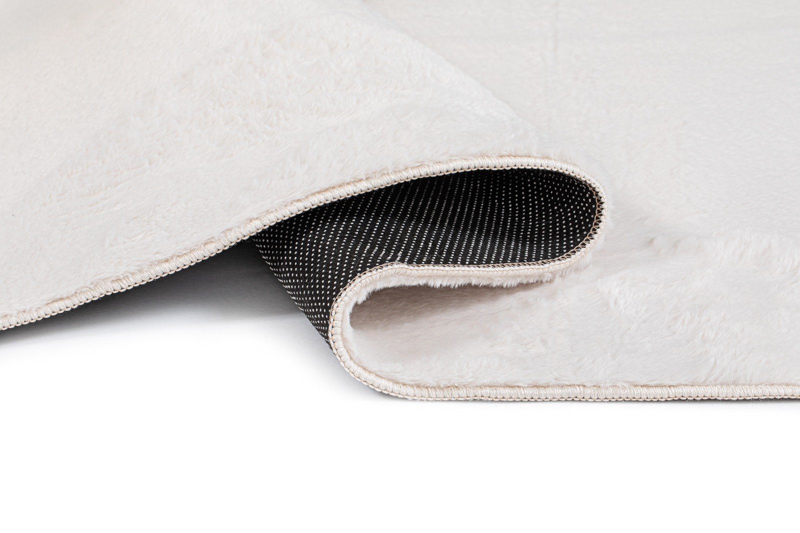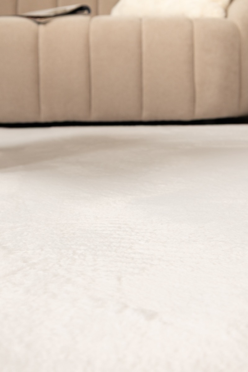Varmvit och mjuk gångmatta med halkfri undersida som skänker komfort och elegans. Perfekt för vardagsrum, sovrum och barnrum.