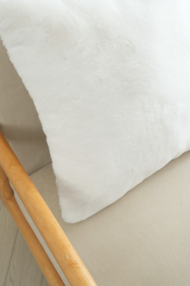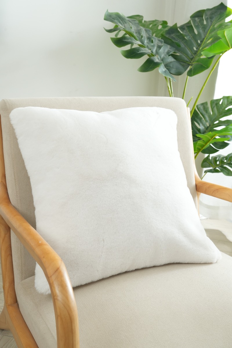 Krämvitt fluffigt kuddfodral 48x48 cm som förhöjer mysfaktorn i modern inredning. Mjuk och lättskött design för soffan eller sängen.