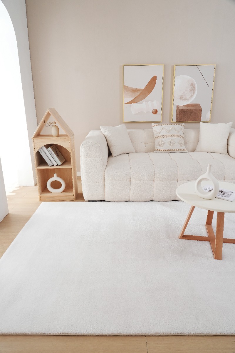 Fluffy offwhite ryamatta i 100% polyester med mjuk och tvättbar yta. Skapar en harmonisk och mysig känsla i ditt hem, enkel att hålla ren.
