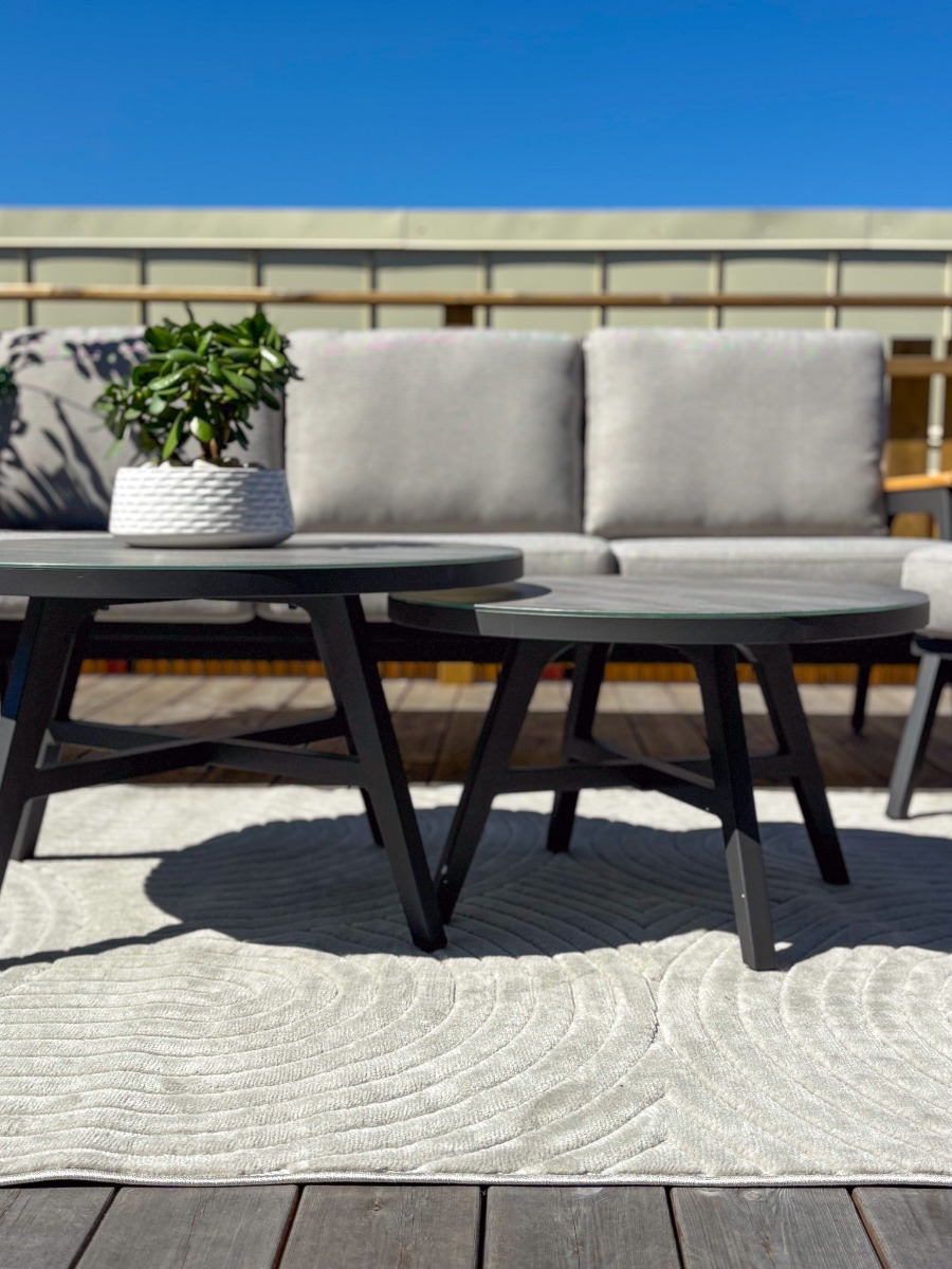Leal Canyon är en tålig och väderbeständig grå matta i polypropylen, perfekt för både inomhus- och utomhusbruk. Skapar en behaglig och balanserad atmosfär i alla rum och utomhusytor.