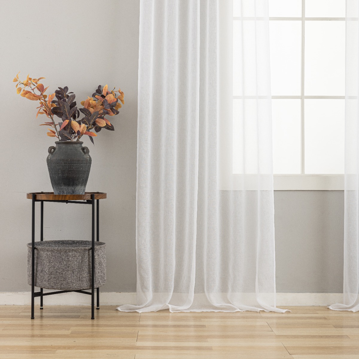 • Enfärgat vitt tyg som släpper in naturligt, mjukt ljus
