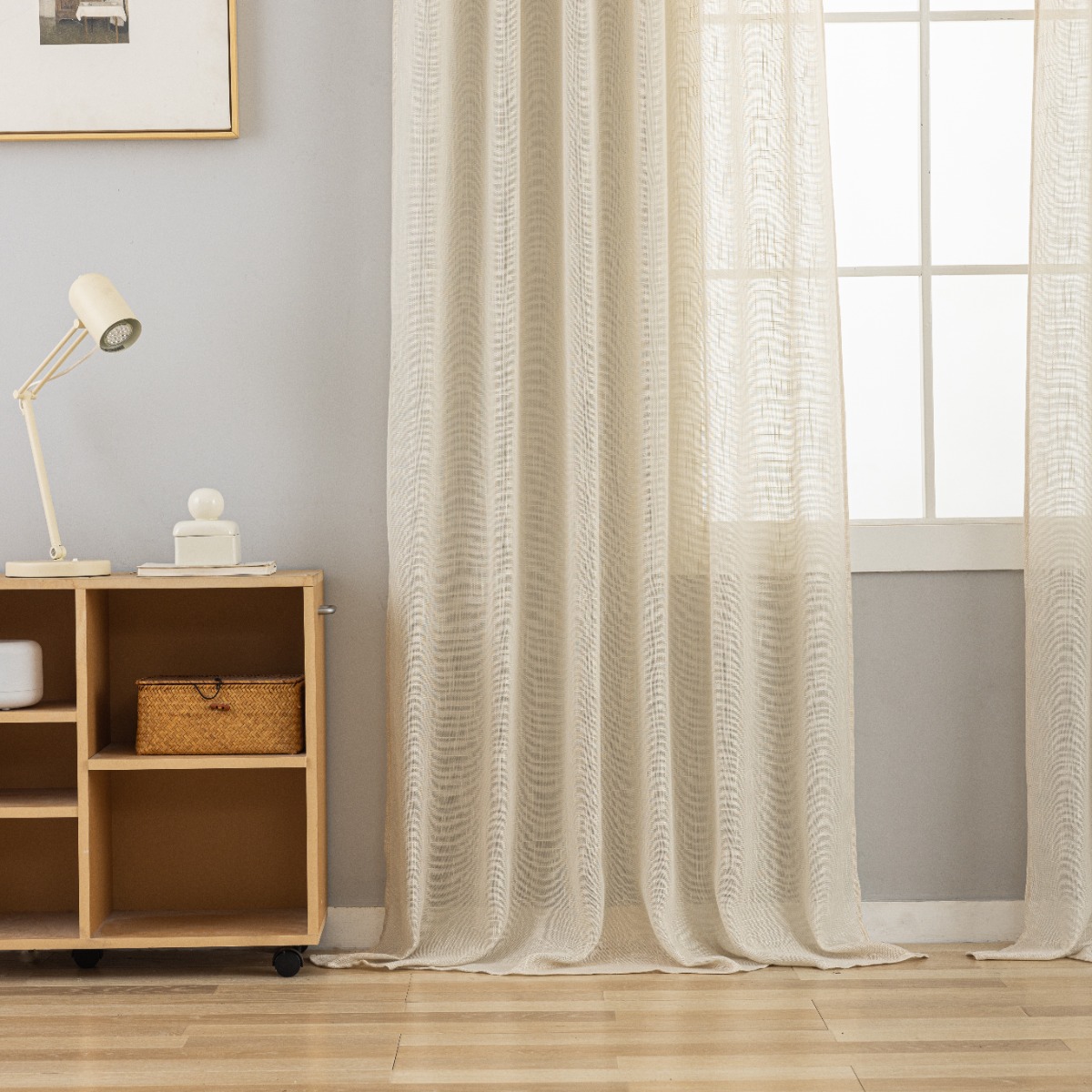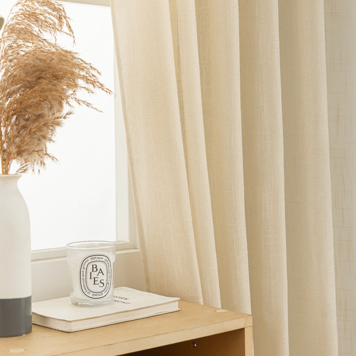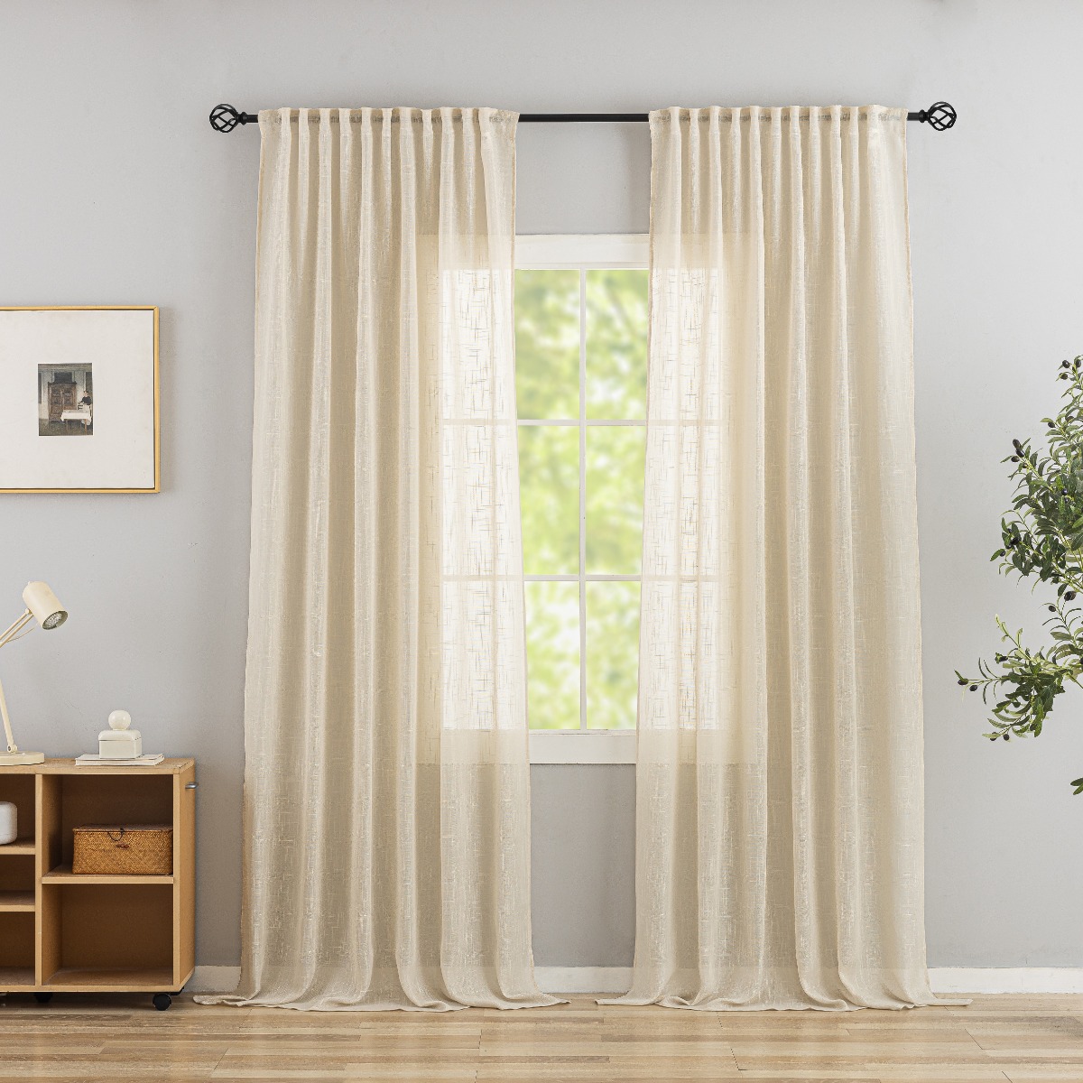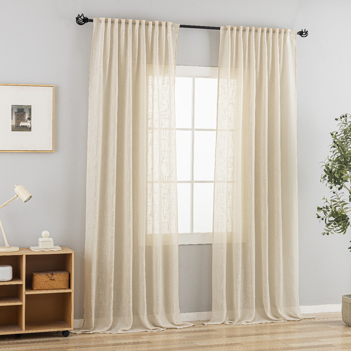 Linnegardin-look 2-pack i beige som skapar en varm och stilren atmosfär. Multifunktionsupphängning ger enkel och flexibel montering.