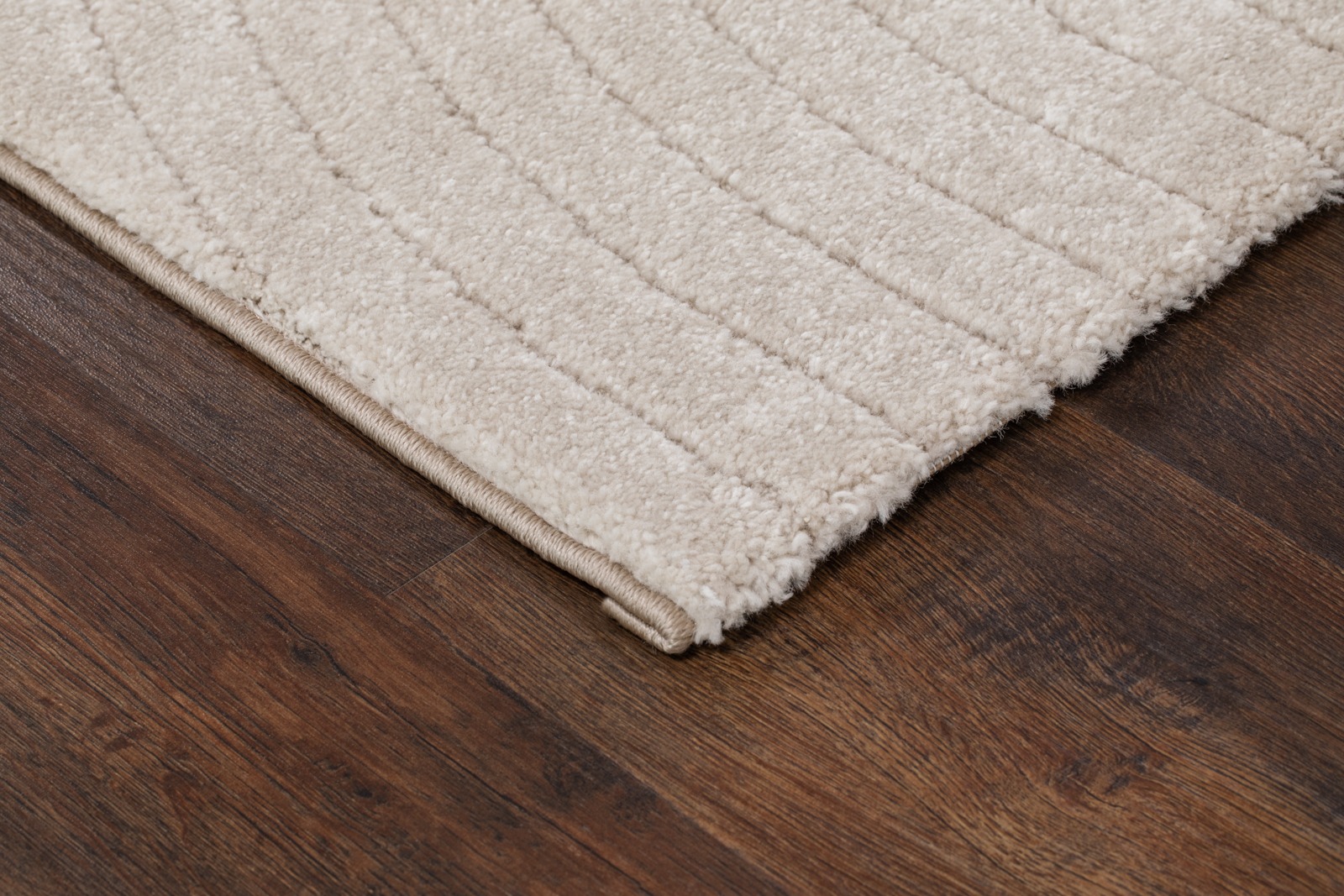 Mjuk linnefärgad Wiltonmatta med elegant high/low-mönster som skapar djup och balans. Passar perfekt i alla rum för en stilfull och behaglig känsla.
