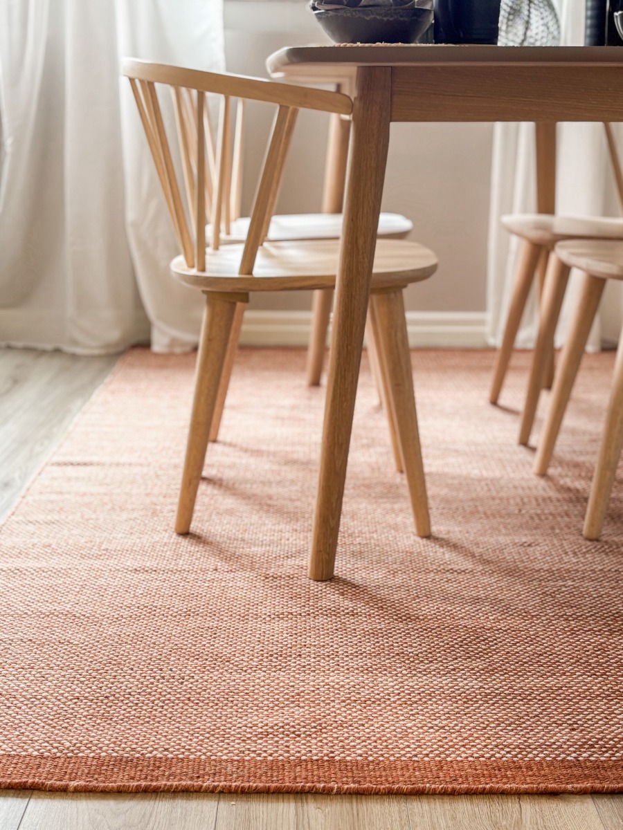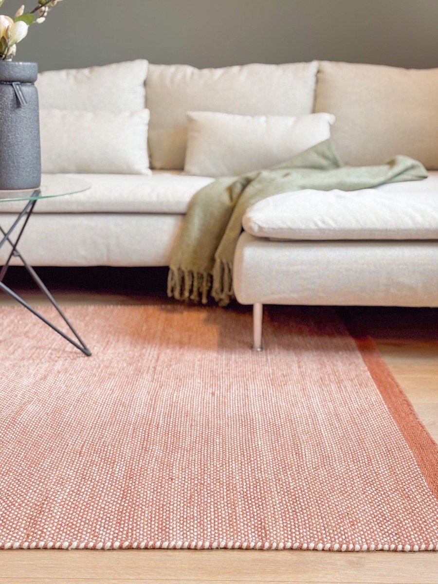 Handvävd ullmatta i varmvacker terrakotta. Slitstark, smutsavvisande och mjuk under fötterna – en naturlig och elegant detaljer i ditt hem.
