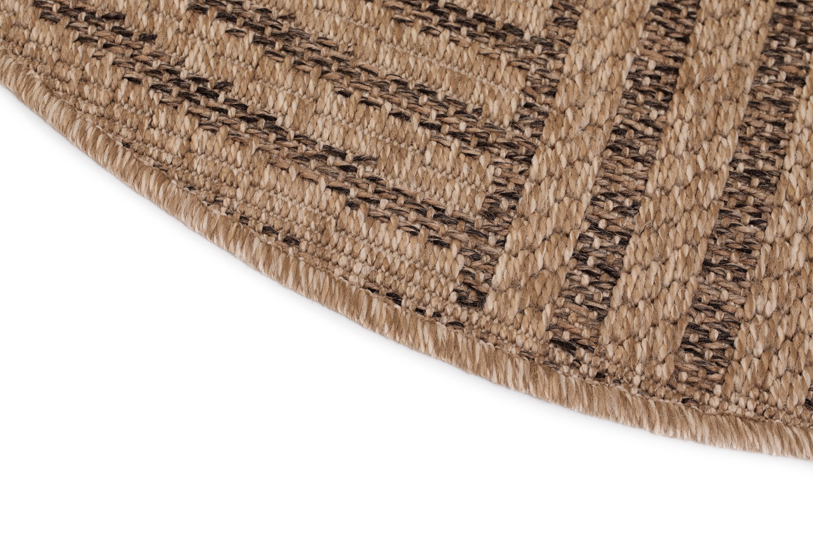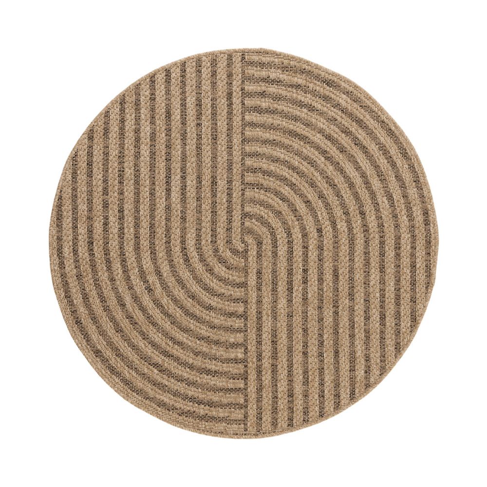 Denna robusta runda matta i beige polypropylen passar perfekt både inomhus och utomhus. Med enkel rengöring och formstabil design erbjuder den långvarig komfort och stil.