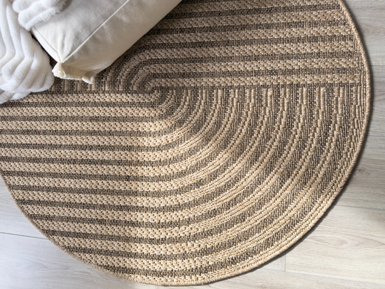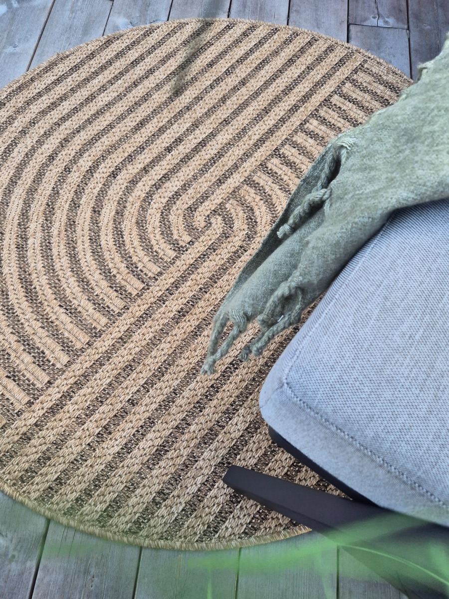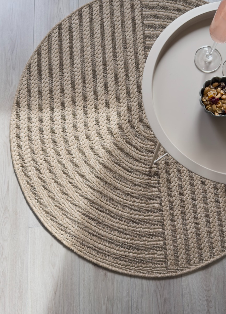 Denna runda beige matta kombinerar en naturlig, rustik look med moderna egenskaper som tål både vardagligt slitage och väderpåverkan. Den är särskilt framtagen för att fungera lika bra i hallen, köket eller på uteplatsen där både komfort och hållbarhet efterfrågas. Mattans polypropylenmaterial ger en lättskött yta som bevarar sin form och färg över tid, vilket gör den till ett flexibelt och långvarigt inredningsval. Den neutrala beige tonen skapar en varm och inbjudande atmosfär samtidigt som den är enkel att kombinera med olika stilar och färger. Tack vare den halksäkra undersidan ligger mattan stadigt på plats och minskar risken för olyckor. Mattan rekommenderas att regelbundet rengöras för att bevara dess fräschör och livslängd, vilket gör den till en praktisk lösning för många miljöer.